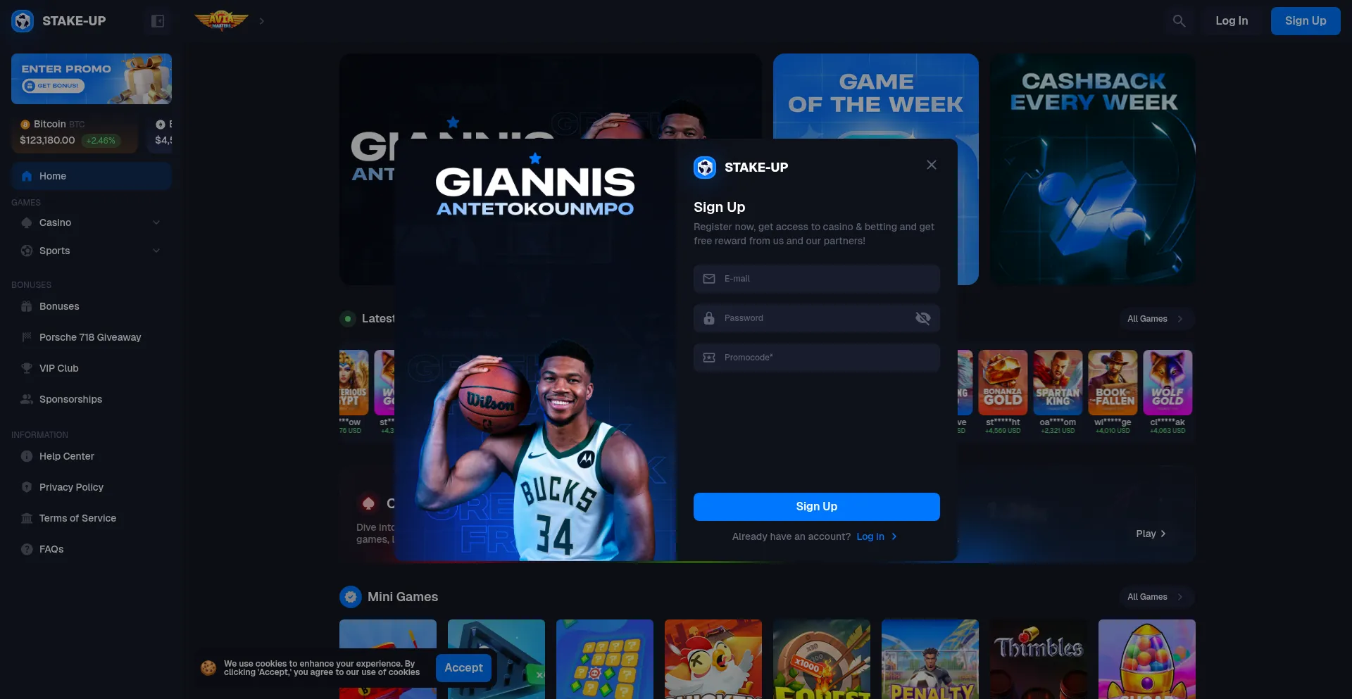 Die Website implementiert Cookie-Zustimmungsmechanismen in Compliance mit Datenschutzregulierungen wie DSGVO oder CCPA. Dies demonstriert, dass stake-up.com Datenschutzstandards einhält und Benutzern Kontrolle über persönliche Datenerfassungspraktiken bietet.