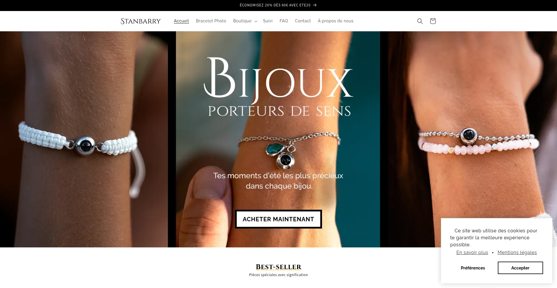 Die Website implementiert Cookie-Zustimmungsmechanismen in Compliance mit Datenschutzregulierungen wie DSGVO oder CCPA. Dies demonstriert, dass stanbarry.fr Datenschutzstandards einhält und Benutzern Kontrolle über persönliche Datenerfassungspraktiken bietet.
