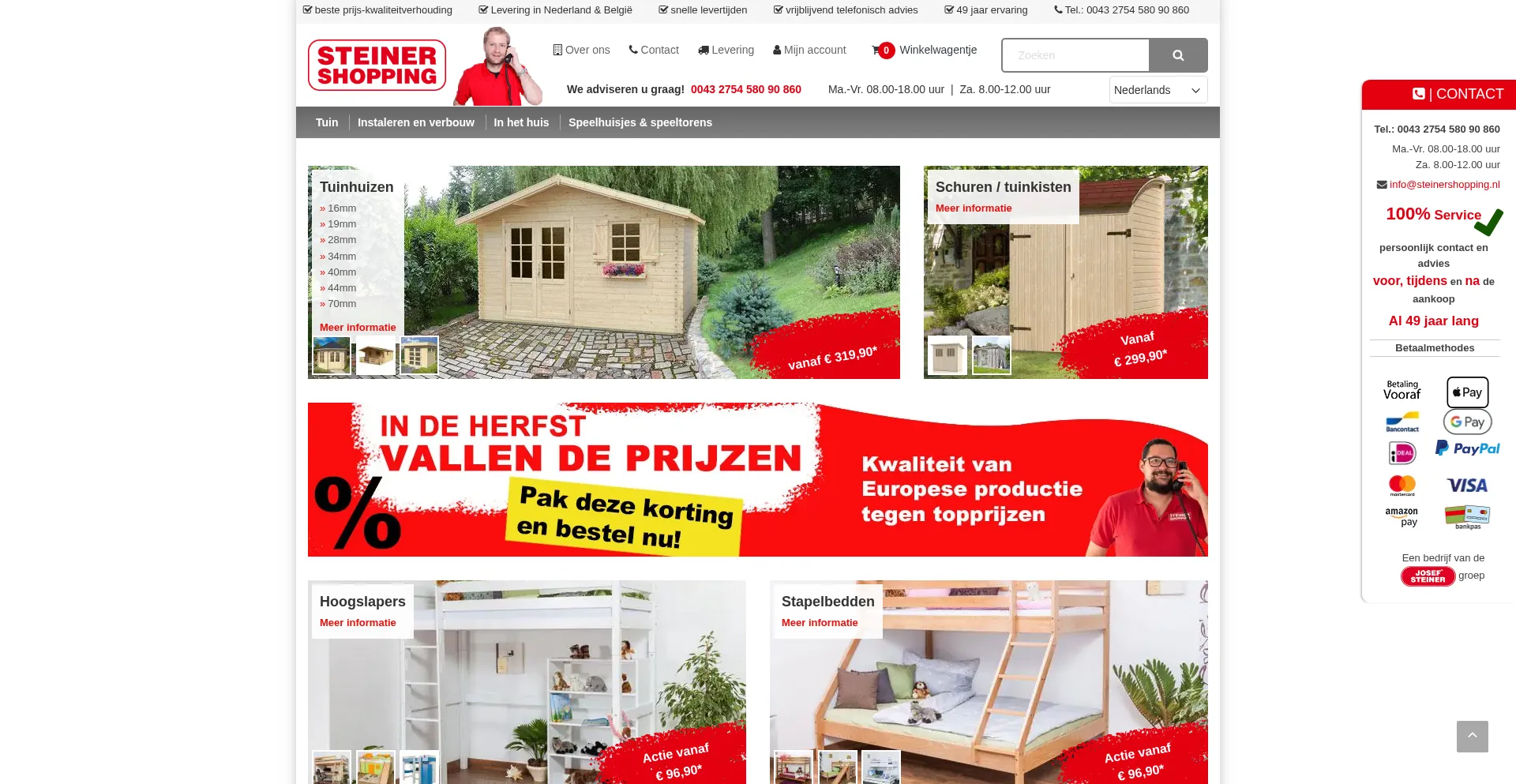 Steiner Shopping - uw betrouwbare partner voor tuinhuizen, kassen, sauna's, houtkachels, gereedschap, machines, pelletkachels, speelhuisjes, hout in de tuin, tuingereedschap en ...