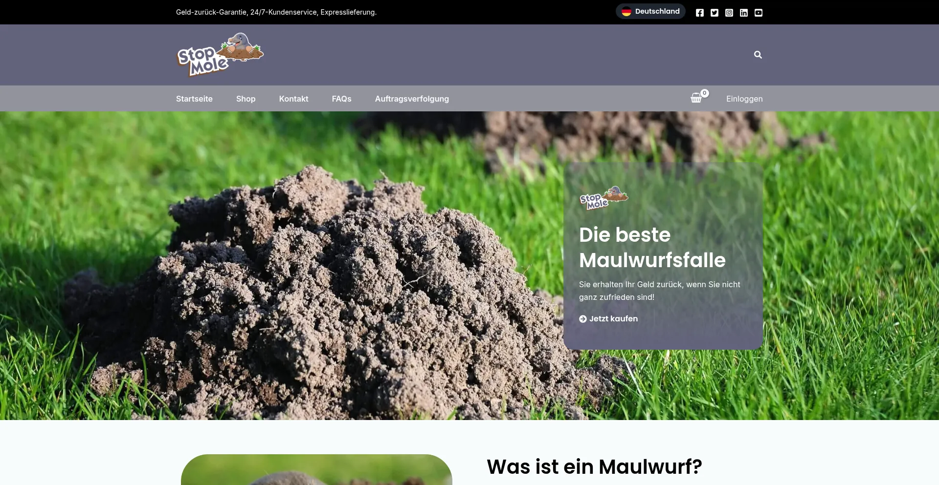 Die Anwesenheit von Social-Media-Links auf der Website deutet darauf hin, dass stopmole.de offizielle Konten auf Social-Media-Plattformen beibehält, was ein positiver Indikator für Glaubwürdigkeit und Engagement ist.