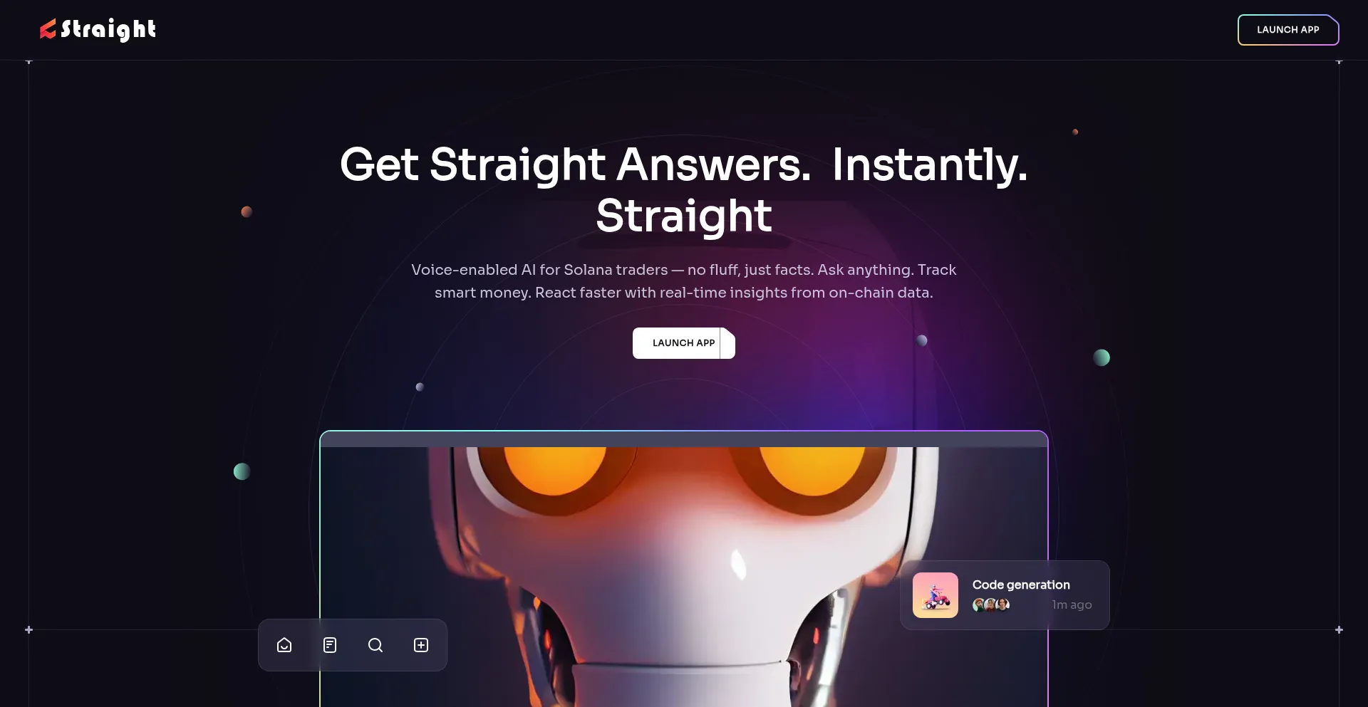 Straight is a voice-powered AI assistant for Solana traders. Track whale activity, spot early buys, and get instant token insights — just ask.