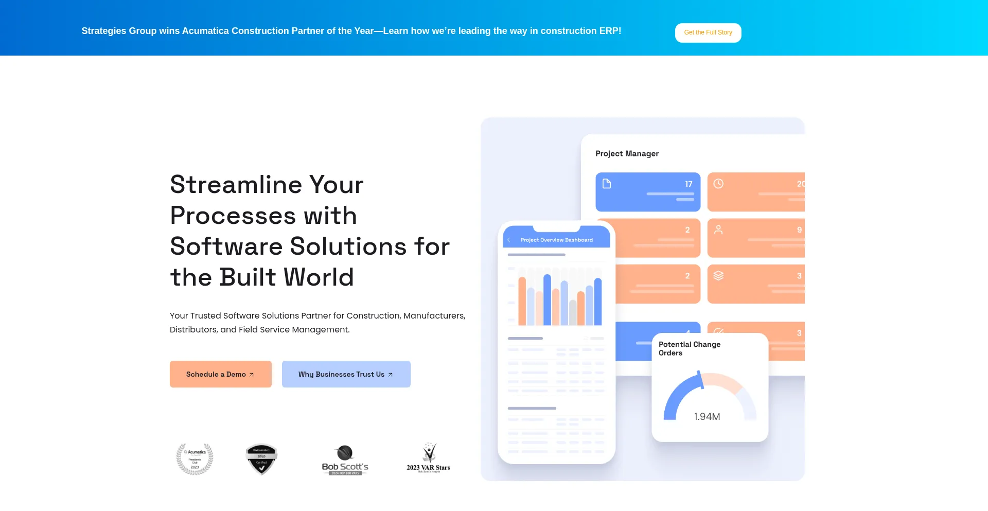 Your Trusted Software Solutions Partner for Construction, Manufacturers, Distributors, and Field Service Management.