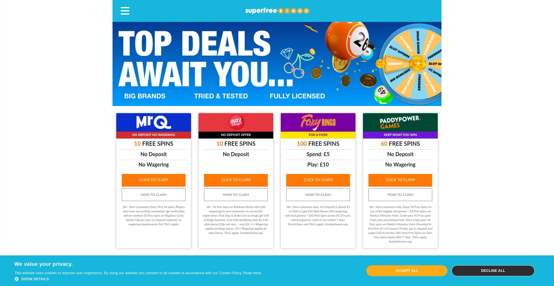 Top Bonus Offers at Super Free Bingo! &#9733 Find Exclusives Deals, Free Casino Money and Deposit Offers! &#9733 Licenced Casinos &#9733 Slots Spins &#9733 Free Demo Play for Fu...