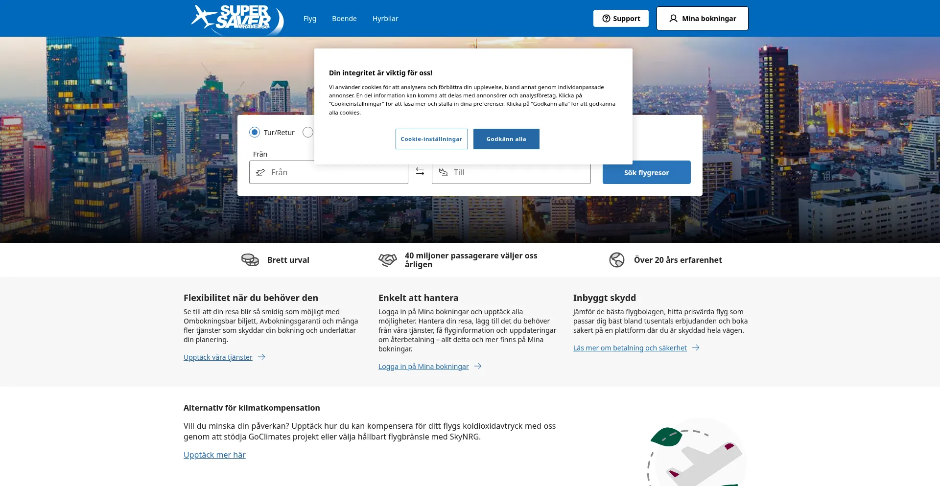 Boka din resa billigt till alla destinationer med Supersavertravel! Här hittar du resor med flyg, hotell och hyrbil till mycket bra priser.