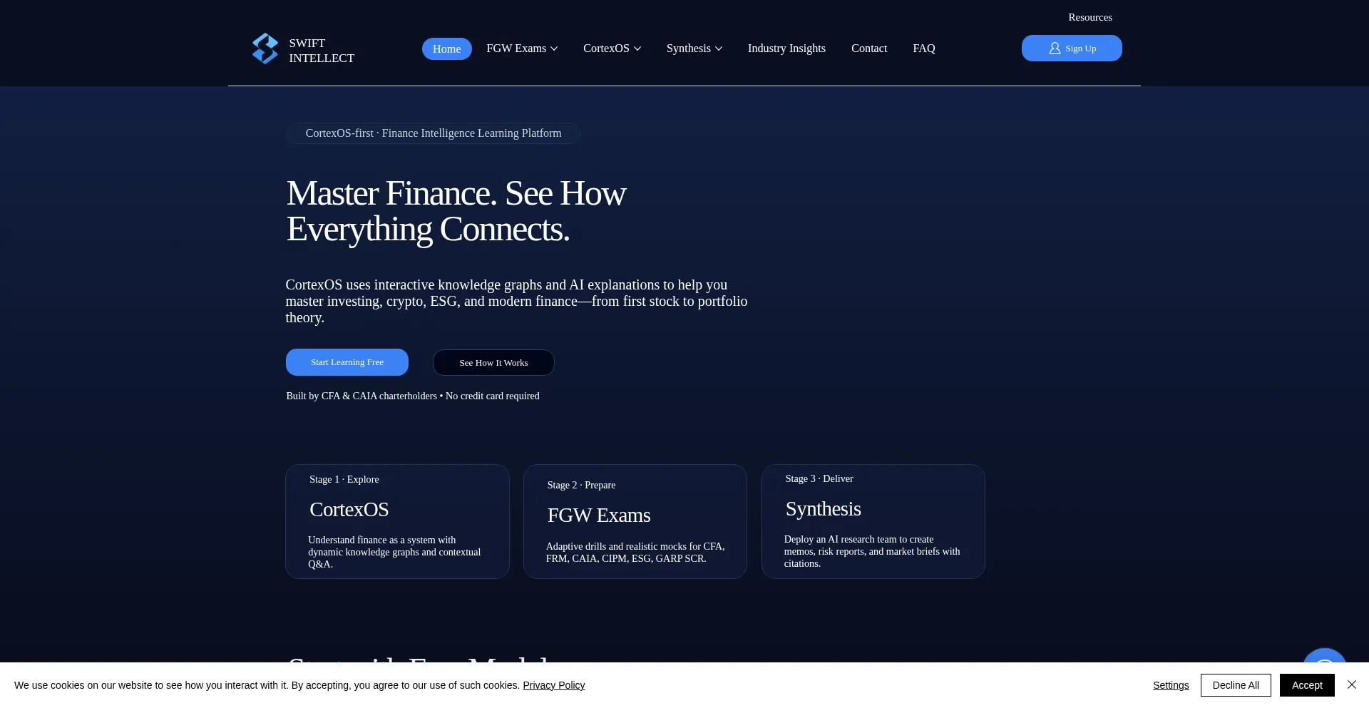 Swift Intellect | Master Finance with FGW Exams, CortexOS & Synthesis Tools