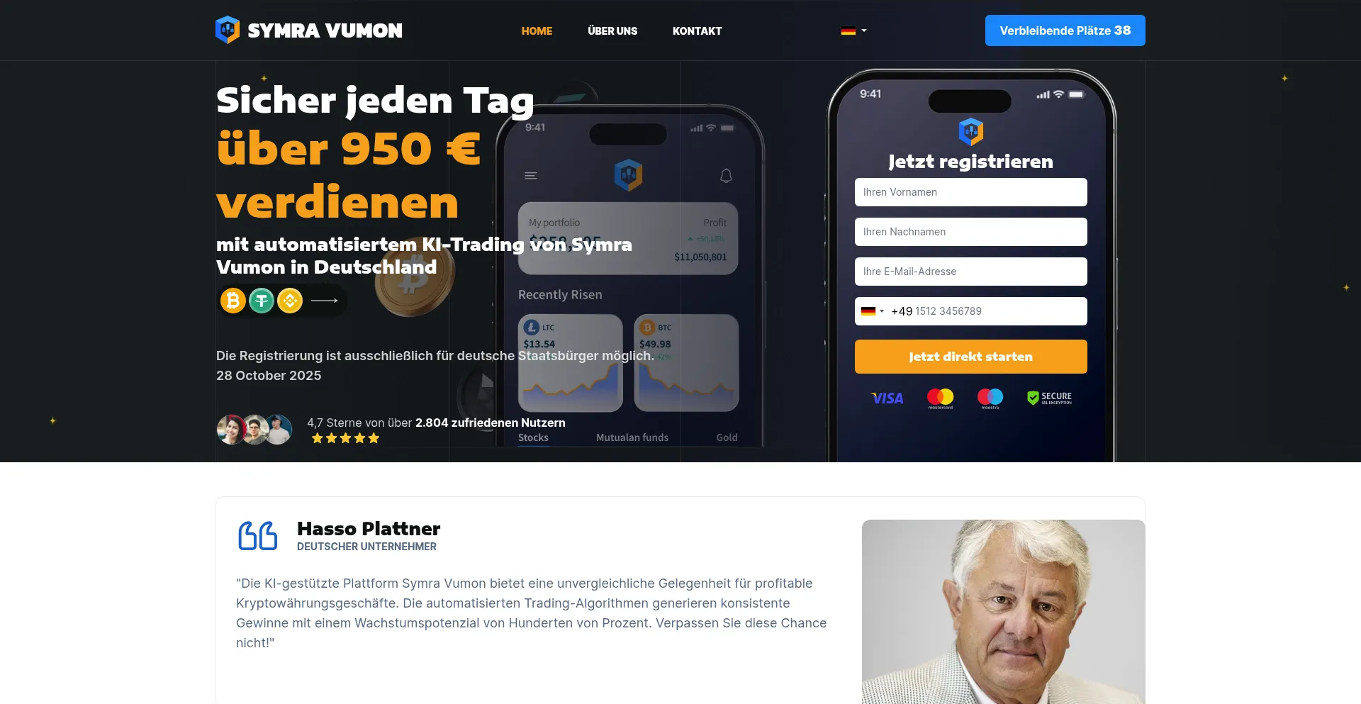 Starten Sie mit Symra Vumon™ automatisiertes KI-Trading in Deutschland. Tägliche Gewinne bis zu 950 €. Hohes Potenzial. Jetzt die offizielle Plattform testen!