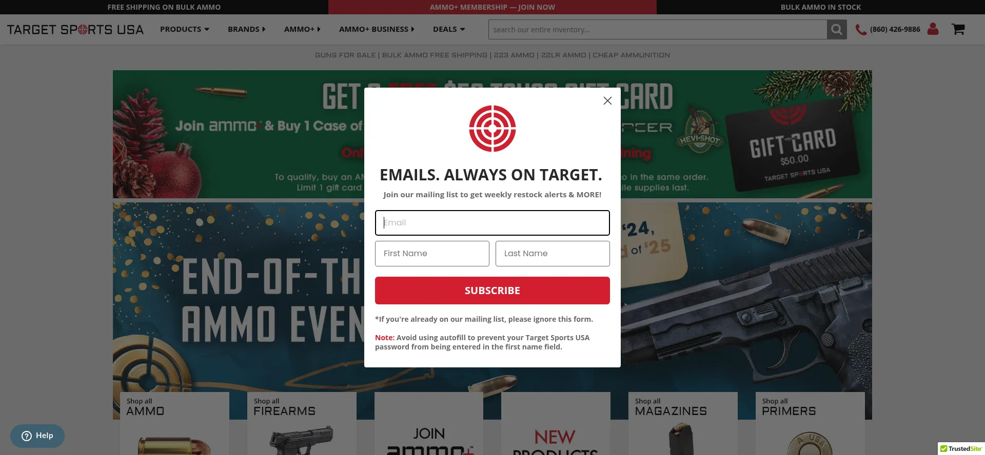 Shopping Reliable Payment Method Deals Guns Firewood Sports Registration Form Review System Bootstrap Framework Google Tag Manager Social Media Links BBB Business Review Seal Long Term SSL Certificate Popular Site Low Trustpilot Score Long Term Domain Established Domain High Trust Score