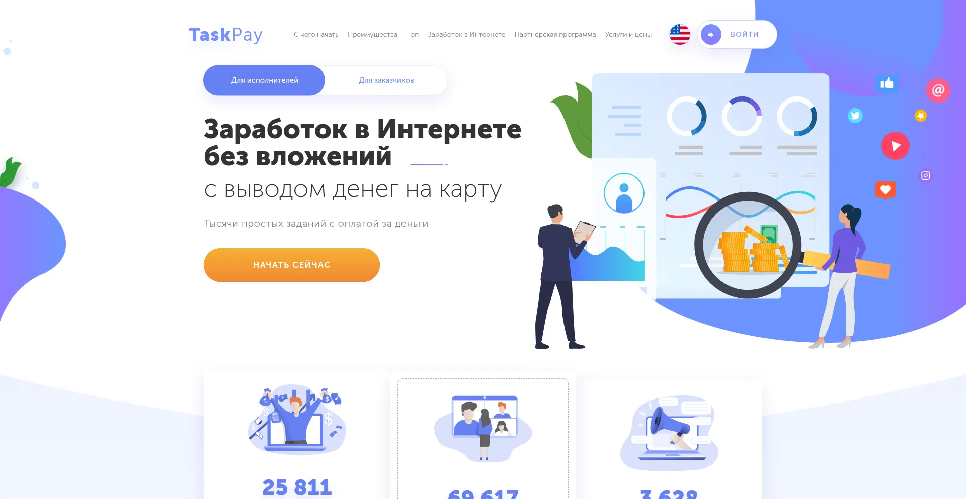 Заработок в интернете без вложений с выводом денег 2025 | Биржа микрозадач - Taskpay.ru