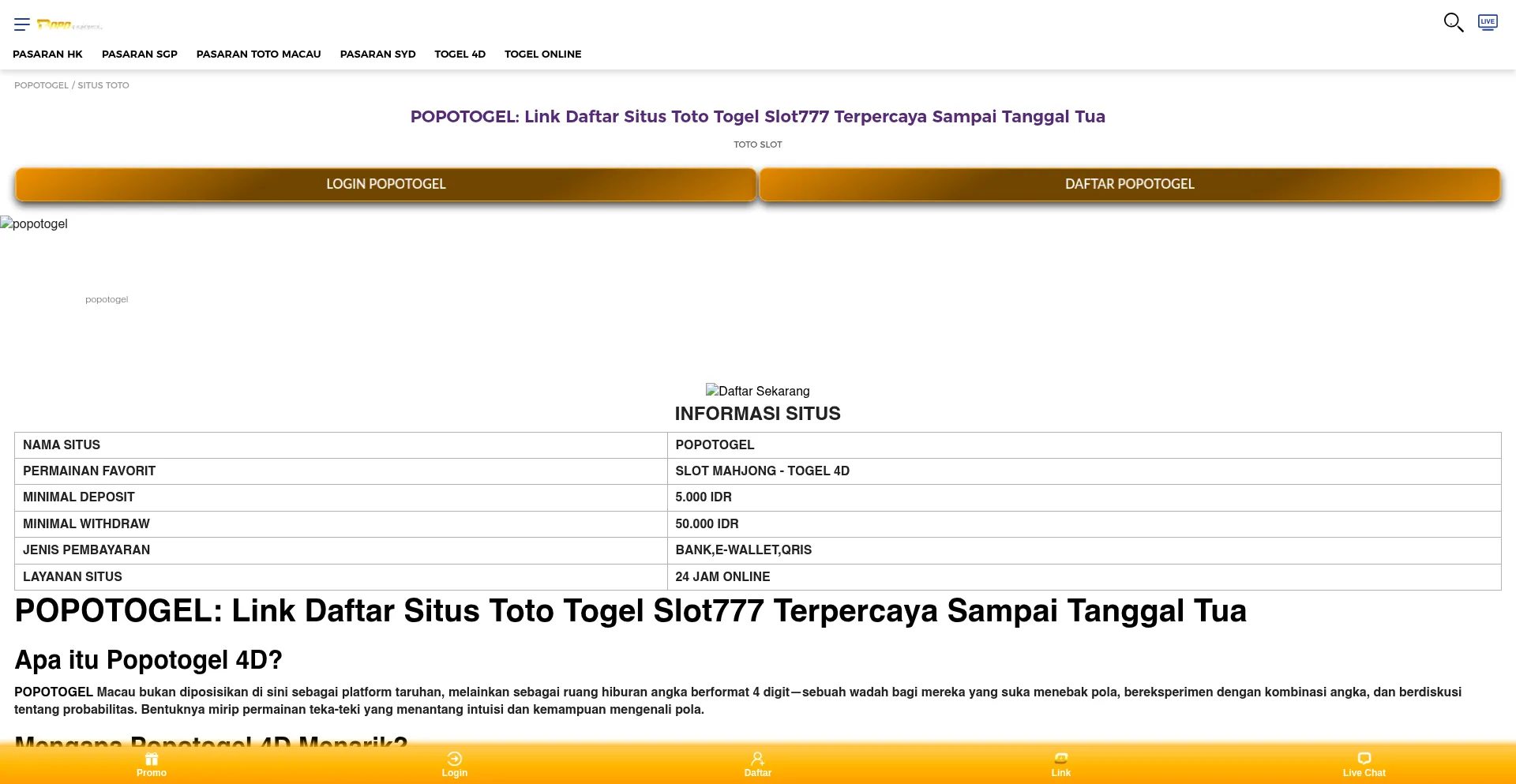 POPOTOGEL: Link Daftar Situs Toto Togel Slot777 Terpercaya Sampai Tanggal Tua