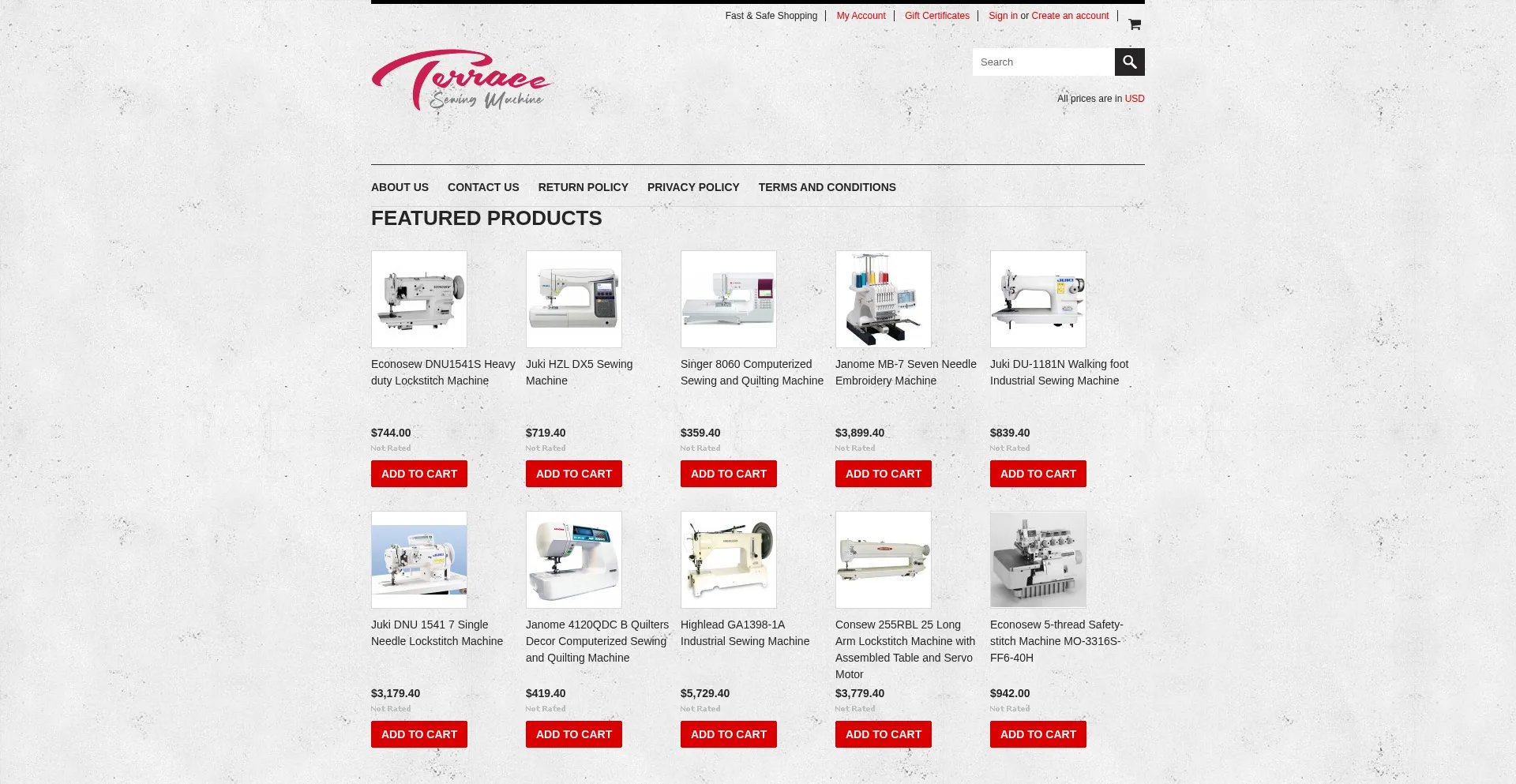Terrace Sewing Machine strives to be your trusted source for all your Sewing Machines, Embroidery, Industrial through quality, competitive prices.