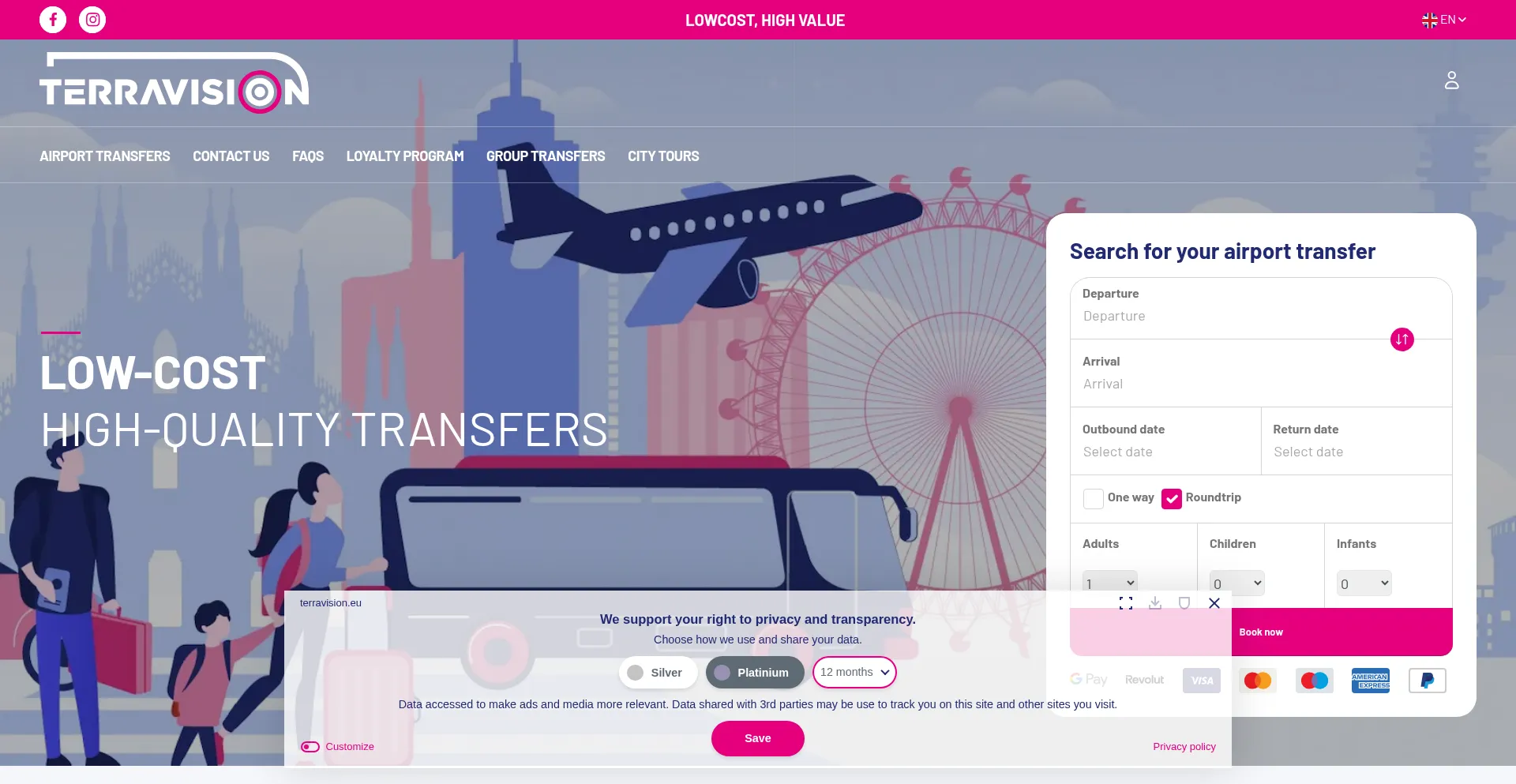Low-Cost Transfers 💰 to/from Major Airports ✈️ and City Centers. Services: frequent, efficient, high value!