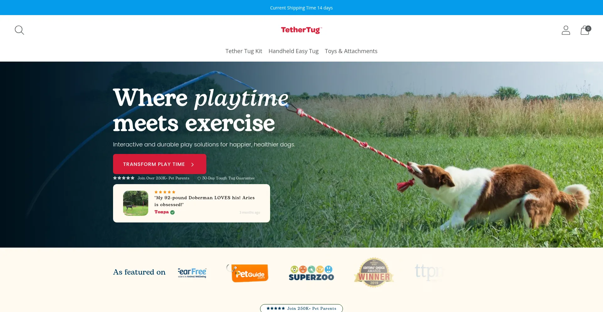 The Tether Tug is a durable, interactive dog toy system designed for active dogs of all breeds and sizes. Give your dog the gift endless tug-of-war with any of our popular tug t...