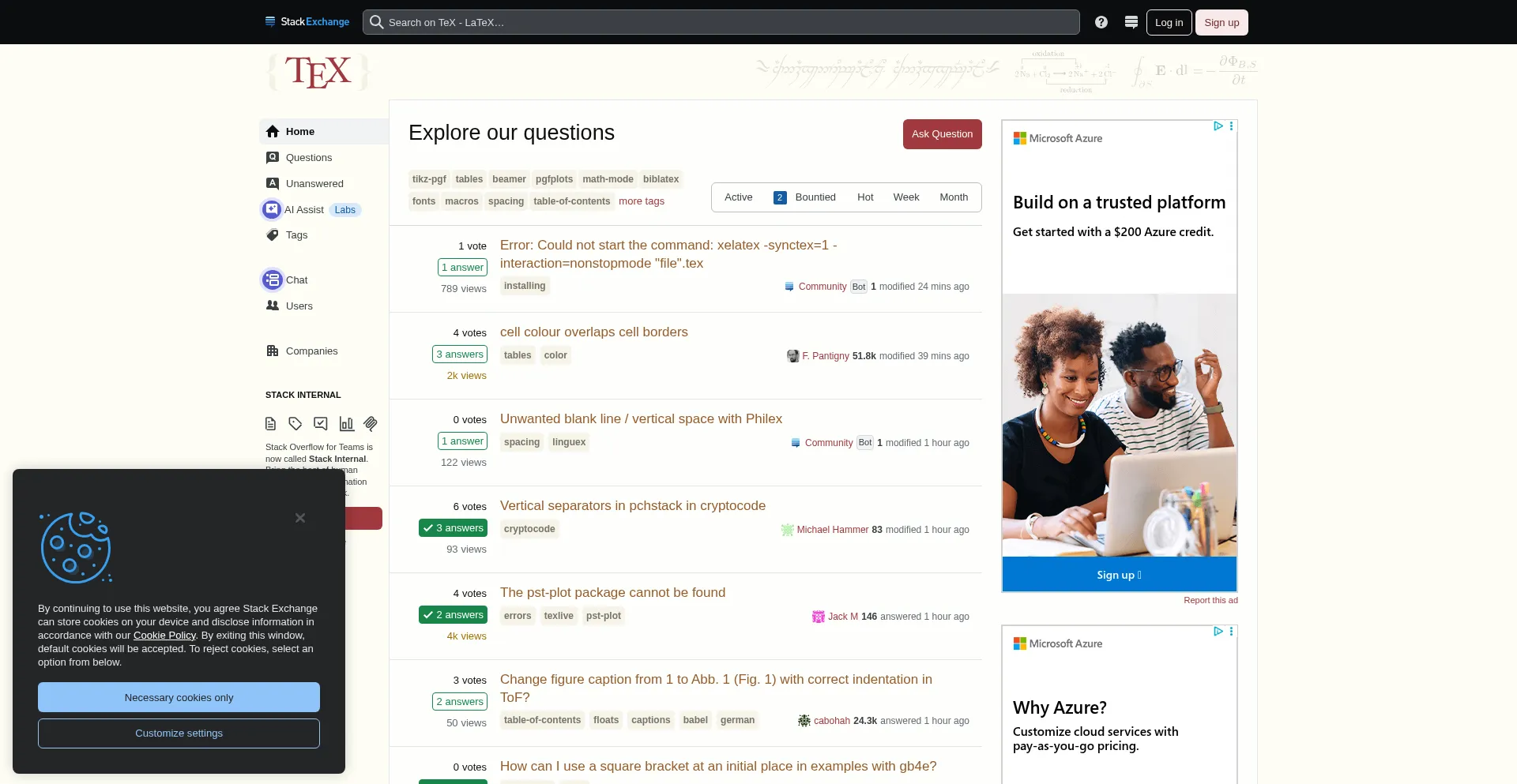 Die Website implementiert Cookie-Zustimmungsmechanismen in Compliance mit Datenschutzregulierungen wie DSGVO oder CCPA. Dies demonstriert, dass tex.stackexchange.com Datenschutzstandards einhält und Benutzern Kontrolle über persönliche Datenerfassungspraktiken bietet.