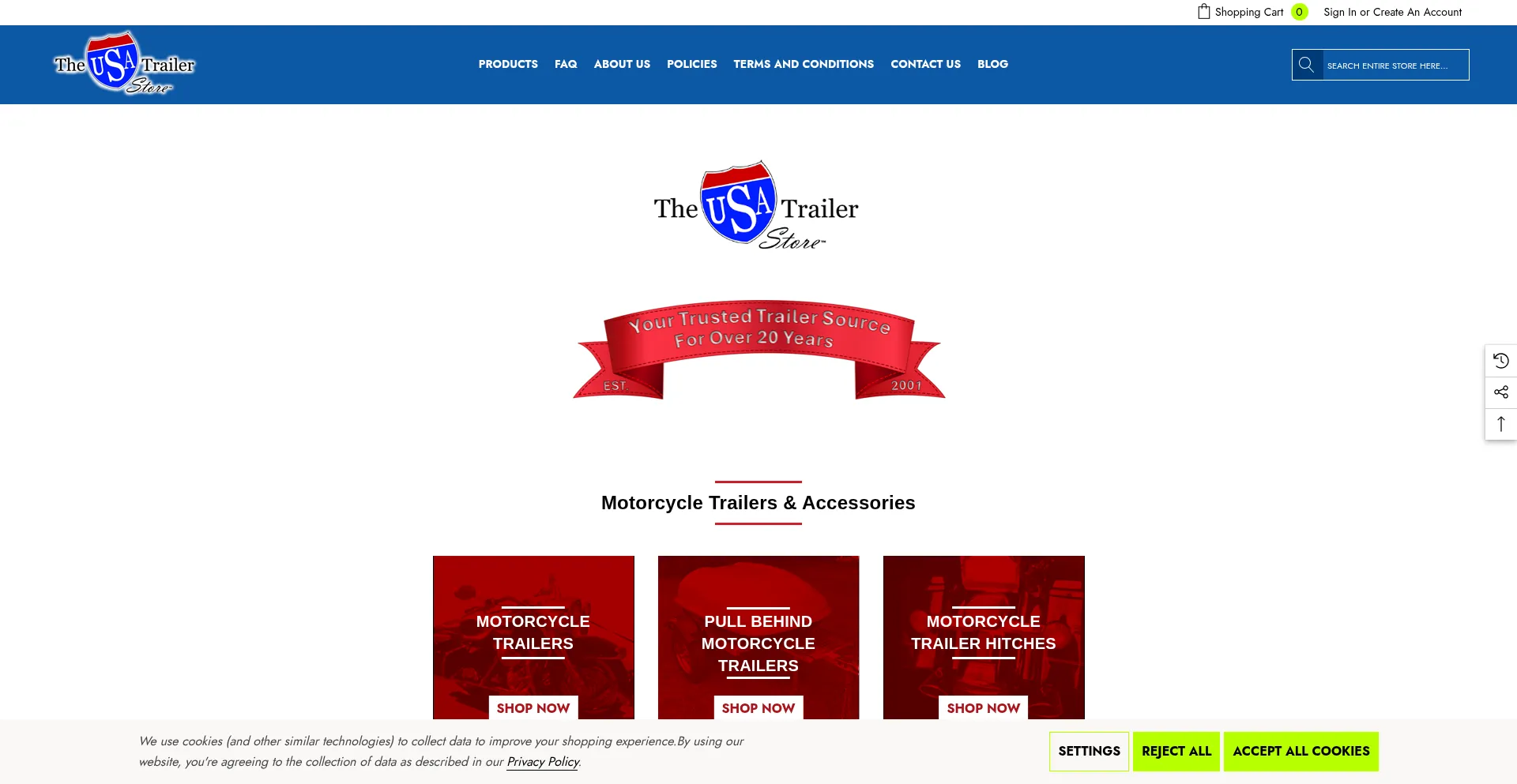 The USA Trailer Store sells high quality motorcycle trailers, pull behind trailers, camping trailers, utility trailers, hitches and accessories.