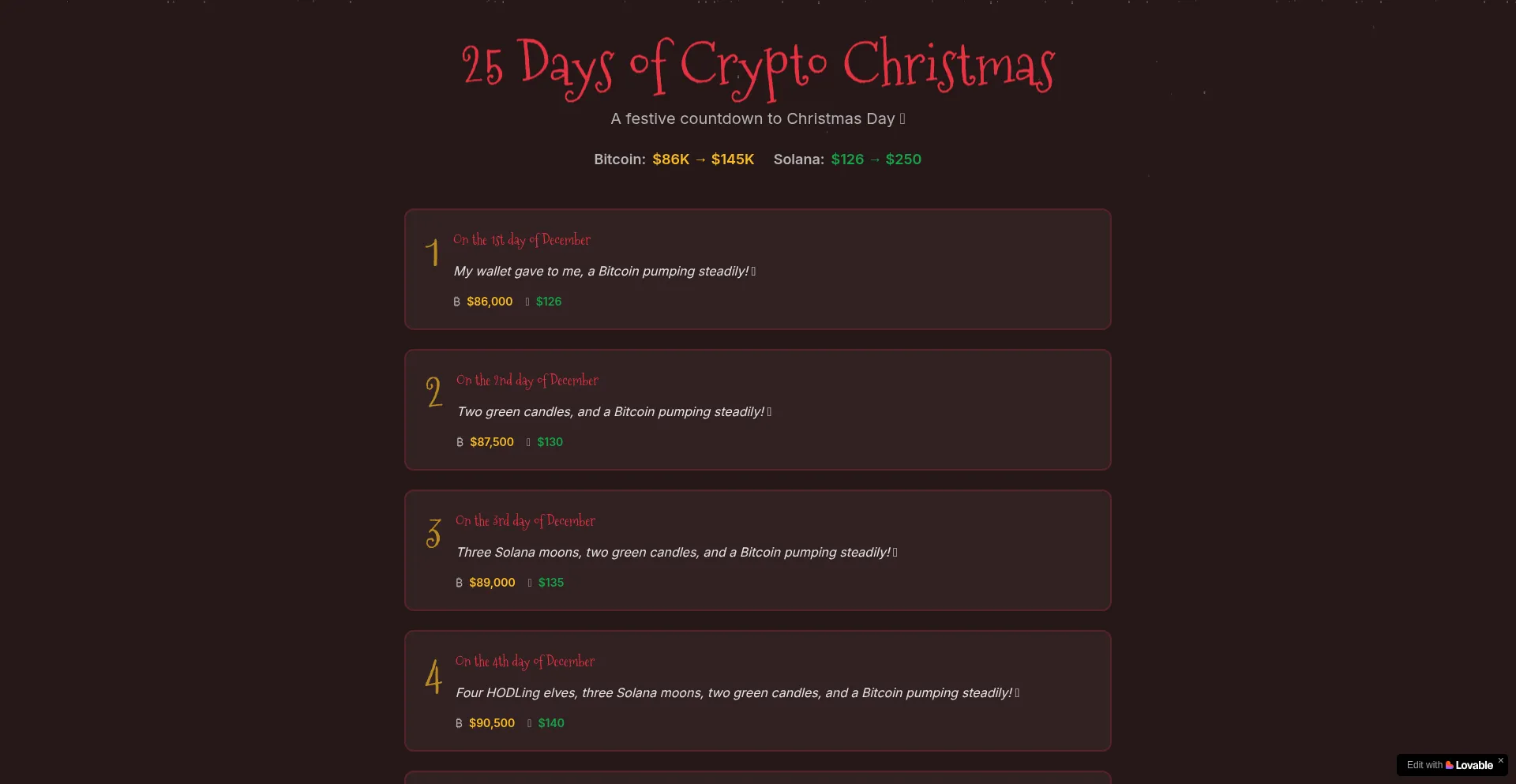 Celebrate the holidays with 30 days of crypto gains! Watch Bitcoin and Solana soar this December.