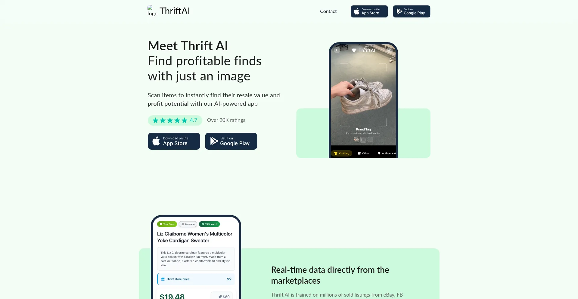 Thrift AI is a powerful AI tool that helps you find profitable and underpriced items in thrift stores, just by scanning the item with your phone camera.
