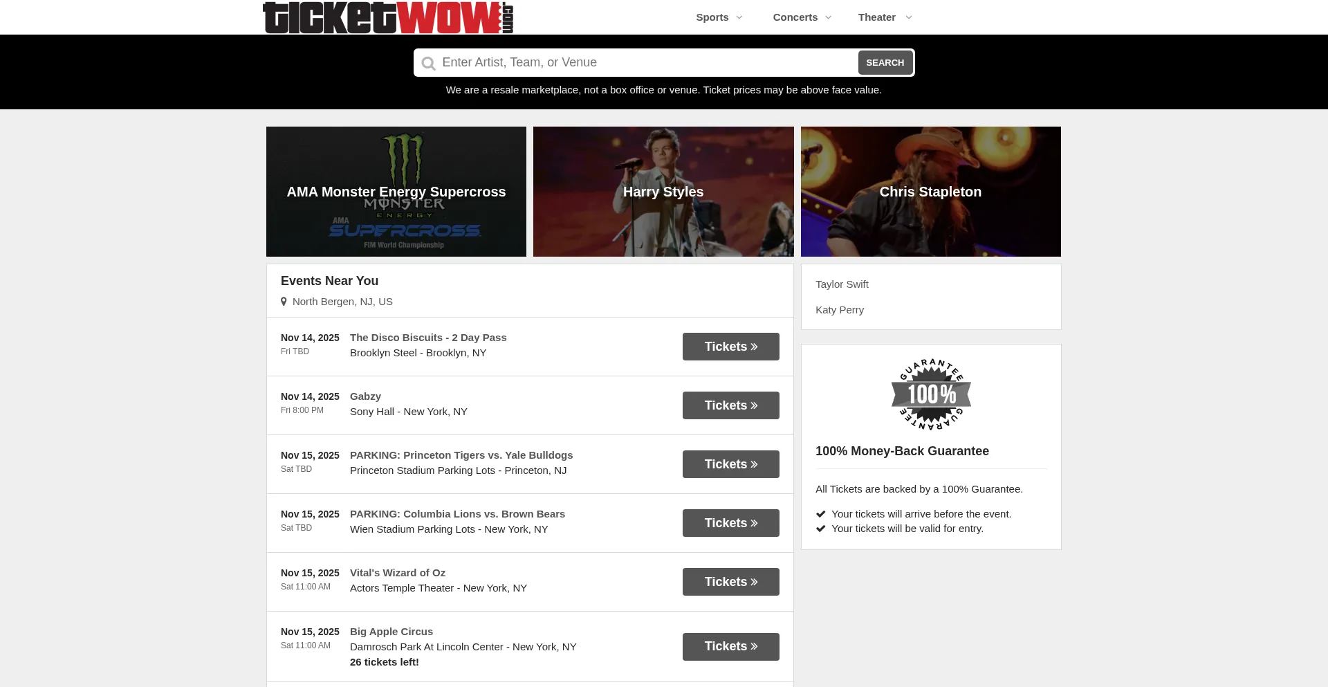 All Tickets are backed by a 100% Guarantee.