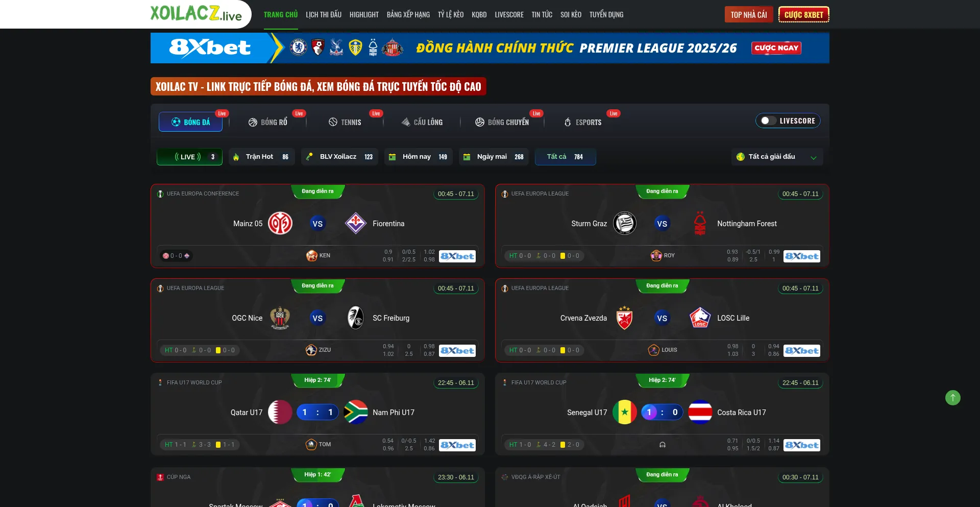 Tường thuật bóng đá trực tuyến miễn phí tại Xoilacz.co full HD. Link Xoilac TV Trực Tiếp Bóng Đá cùng bình luận xem bóng đá tiếng Việt lượn...