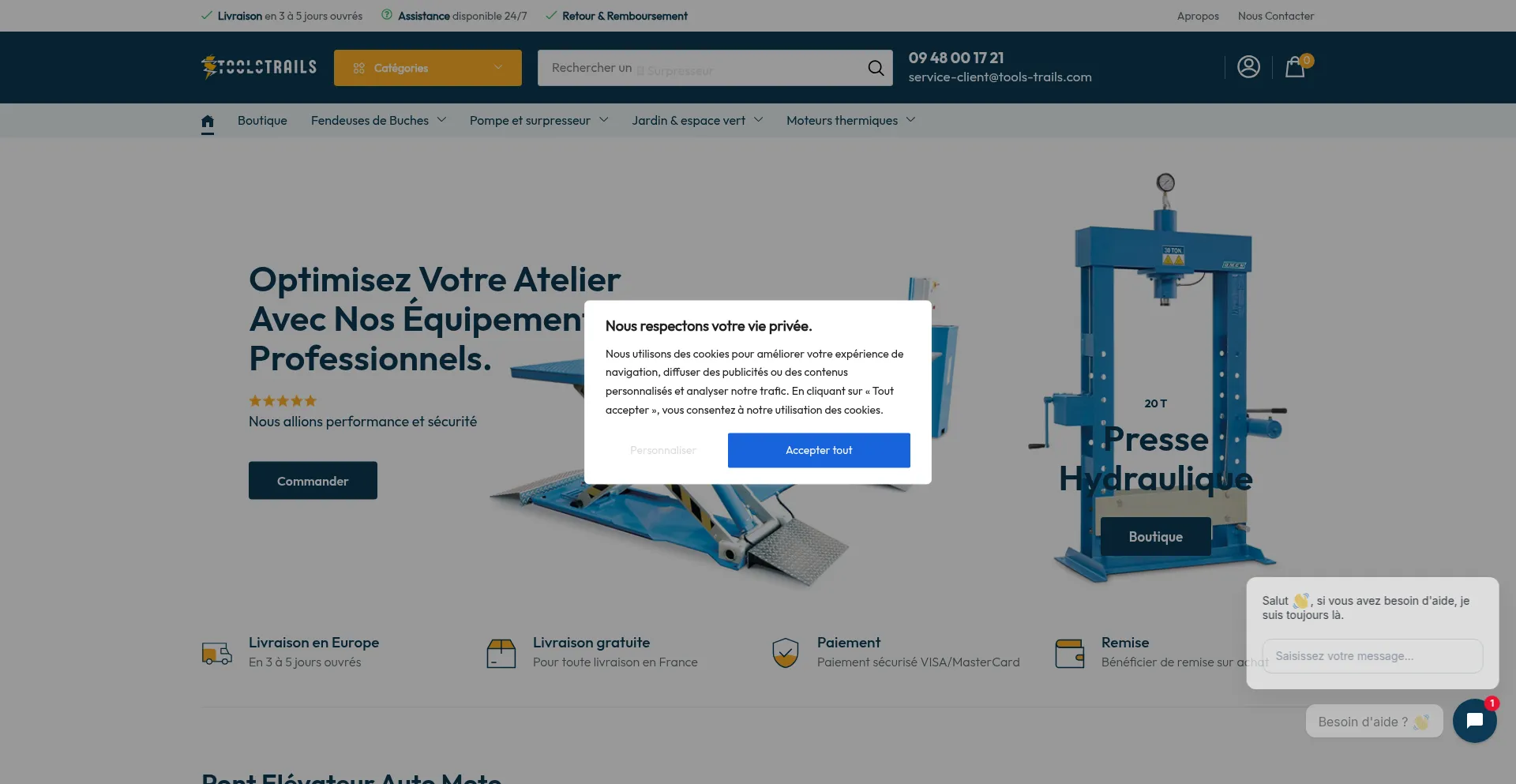 Shopping Reliable Payment Method Deals Registration Form France Cookie Consent Wordpress Platform Google Tag Manager SEO Optimization Live Chat AI-generated Text Young Domain