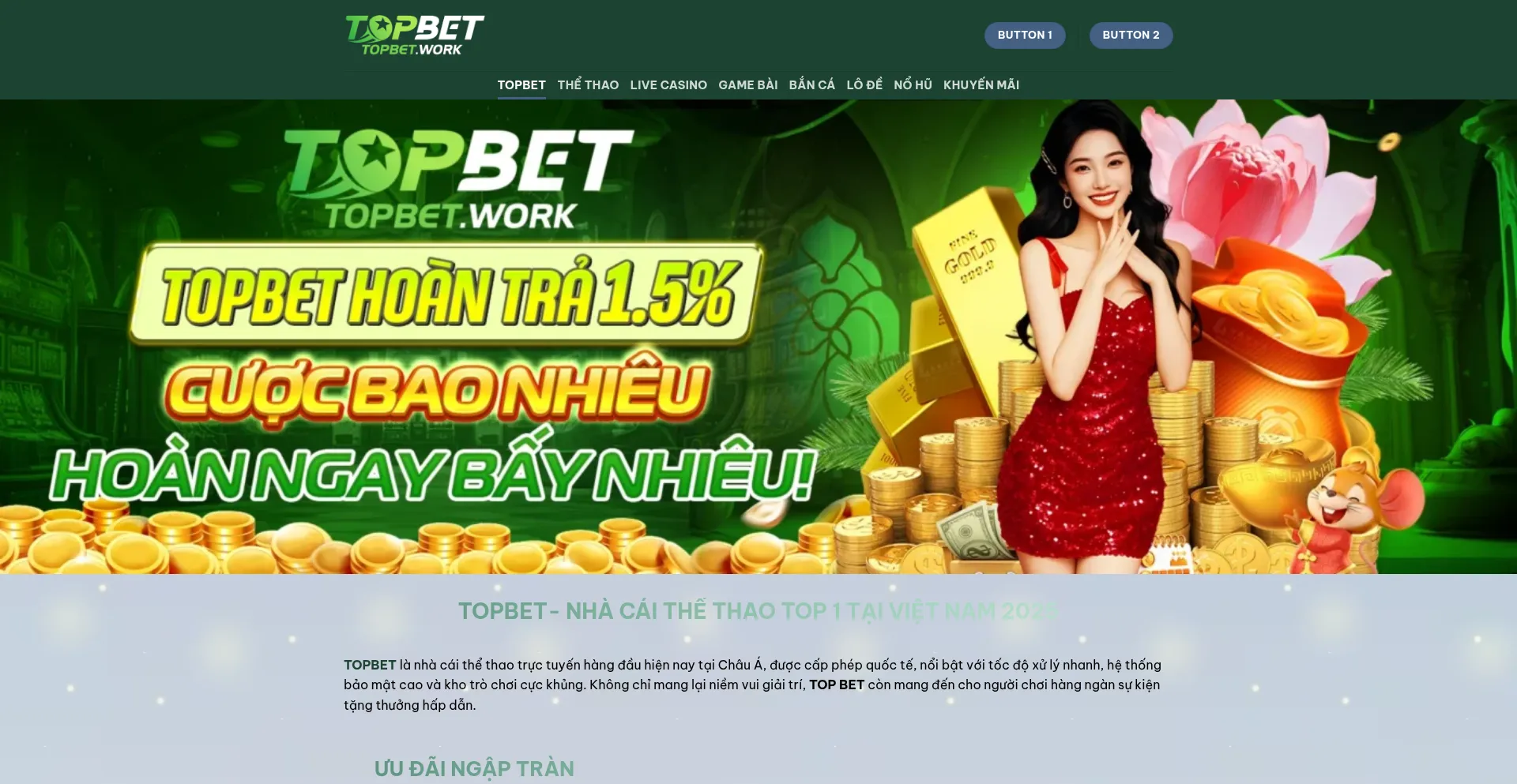 TOPBET là nhà cái uy tín hàng đầu Việt Nam 2025, tặng thưởng +88K cho tân thủ, nạp rút siêu tốc 1 phút, kho game cực khủng, cá cược an toàn tha...