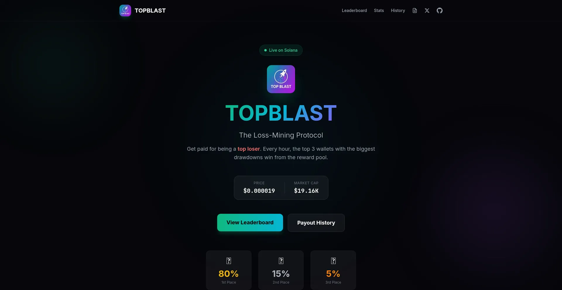 The world's first Loss-Mining Protocol. Get paid for being a top blaster. Every hour, the top 3 losers win from the reward pool.