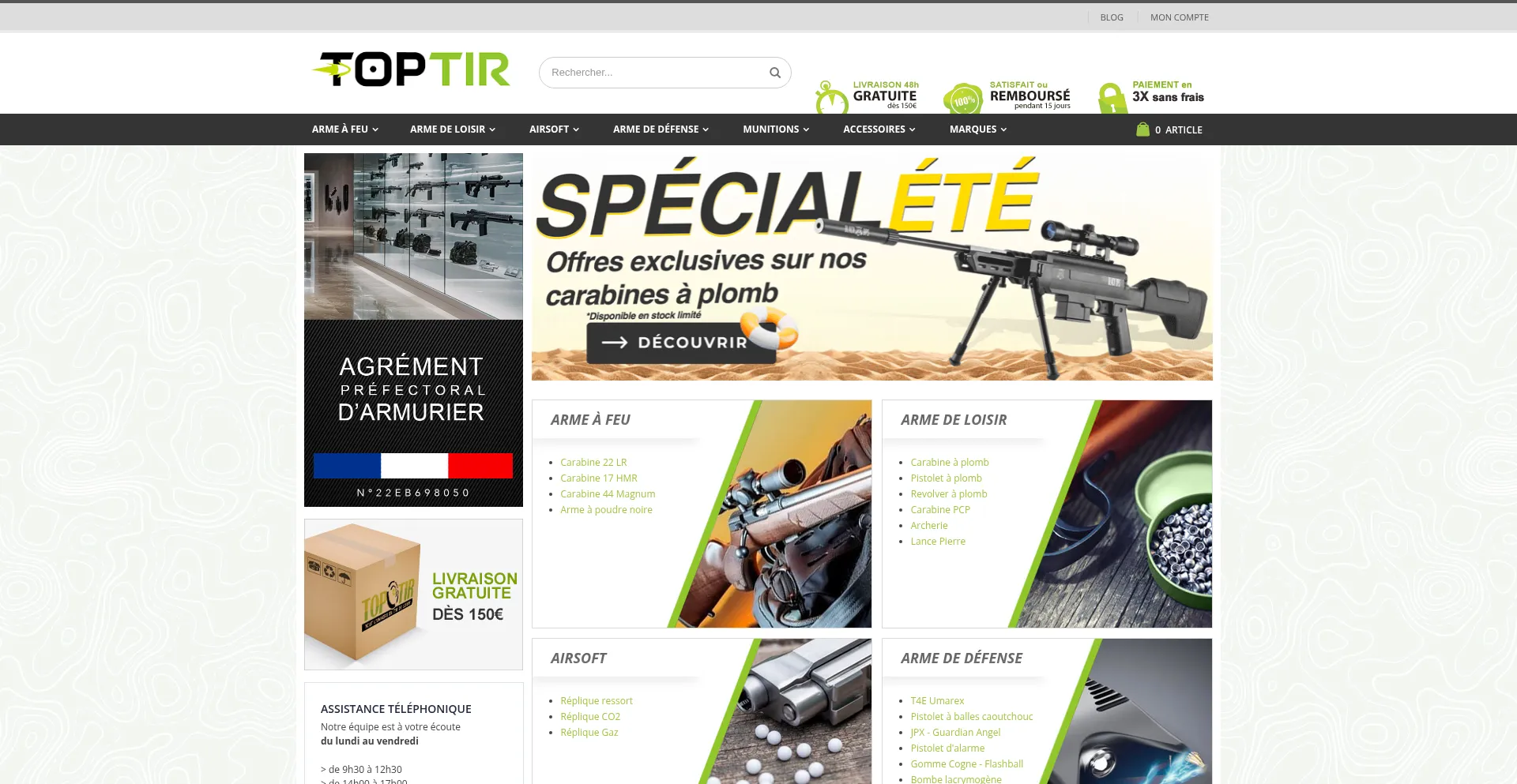 TopTir - Armurerie en ligne, carabine et pistolet à plomb, airsoft et armes de défense