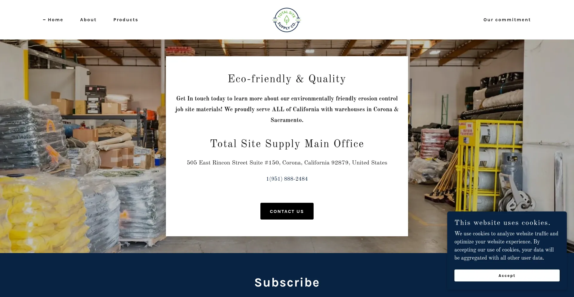 Die Website implementiert Cookie-Zustimmungsmechanismen in Compliance mit Datenschutzregulierungen wie DSGVO oder CCPA. Dies demonstriert, dass totalsitesupply.com Datenschutzstandards einhält und Benutzern Kontrolle über persönliche Datenerfassungspraktiken bietet.