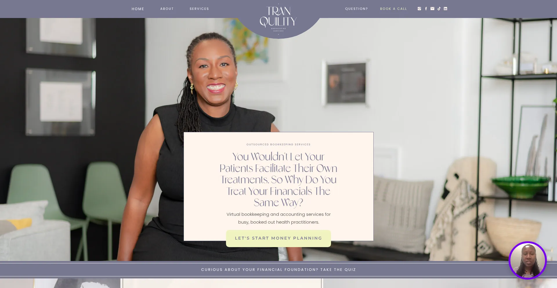 Die Anwesenheit von Social-Media-Links auf der Website deutet darauf hin, dass tranquilitybookkeepingservices.com offizielle Konten auf Social-Media-Plattformen beibehält, was ein positiver Indikator für Glaubwürdigkeit und Engagement ist.