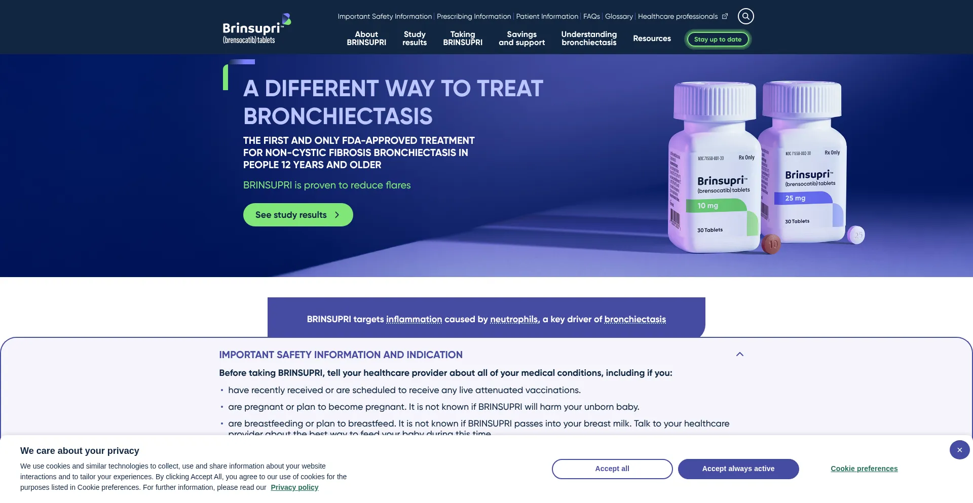 BRINSUPRI (brensocatib) is FDA-approved for non-cystic fibrosis bronchiectasis in adults and children 12 years and older. See Prescribing and Safety Information.