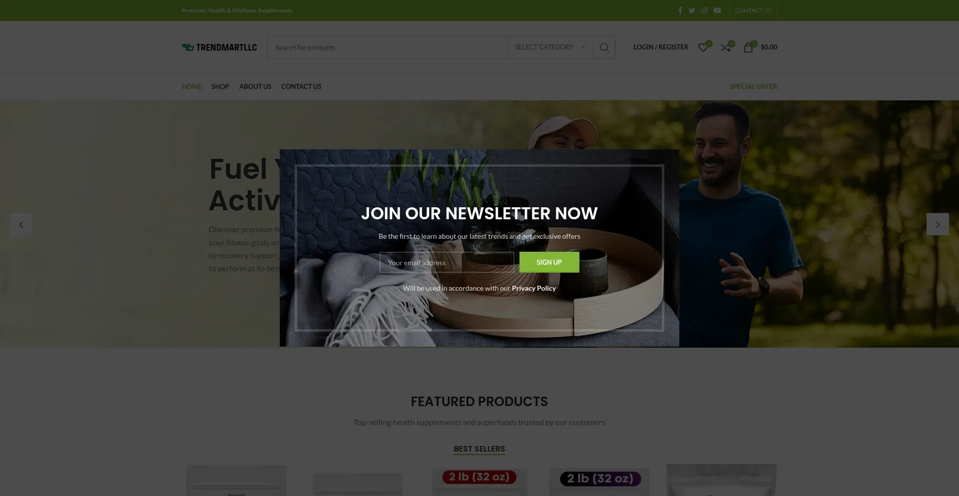 Discover premium health supplements and superfoods that support your fitness goals and daily wellness routine.