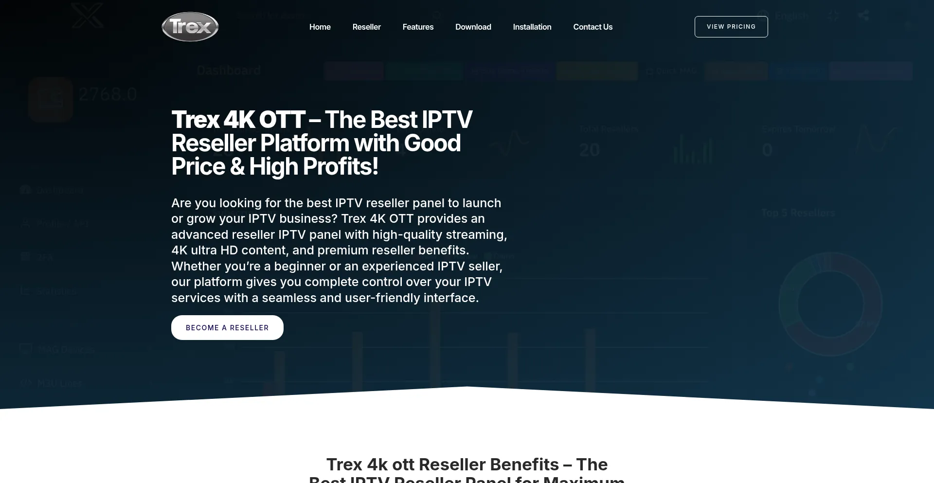 Join Trex 4K OTT, the leading IPTV reseller panel, and start your IPTV business with ease. Get the best IPTV reseller deals, full HD & 4K streaming, and premium reseller benefit...
