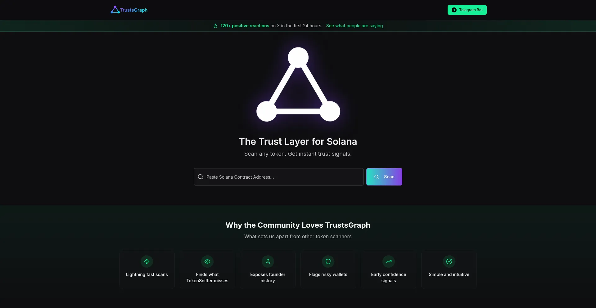 TrustsGraph - The Trust Layer for Solana. Scan any token and get instant trust signals with our advanced scoring system.