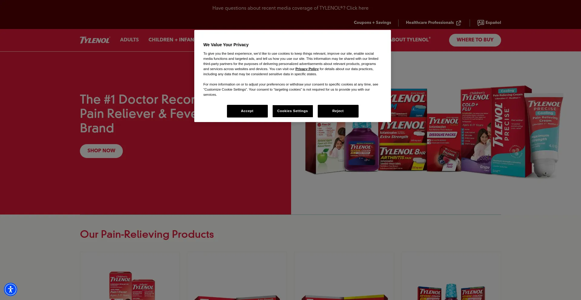 Die Website implementiert Cookie-Zustimmungsmechanismen in Compliance mit Datenschutzregulierungen wie DSGVO oder CCPA. Dies demonstriert, dass tylenol.com Datenschutzstandards einhält und Benutzern Kontrolle über persönliche Datenerfassungspraktiken bietet.
