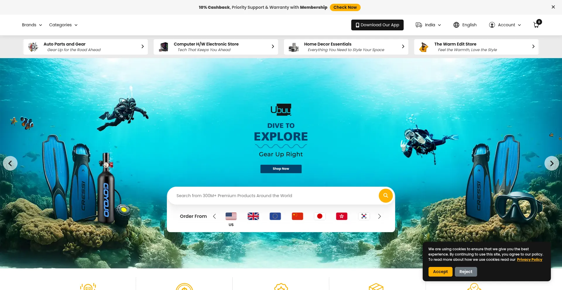 Die Website implementiert Cookie-Zustimmungsmechanismen in Compliance mit Datenschutzregulierungen wie DSGVO oder CCPA. Dies demonstriert, dass ubuy.co.in Datenschutzstandards einhält und Benutzern Kontrolle über persönliche Datenerfassungspraktiken bietet.