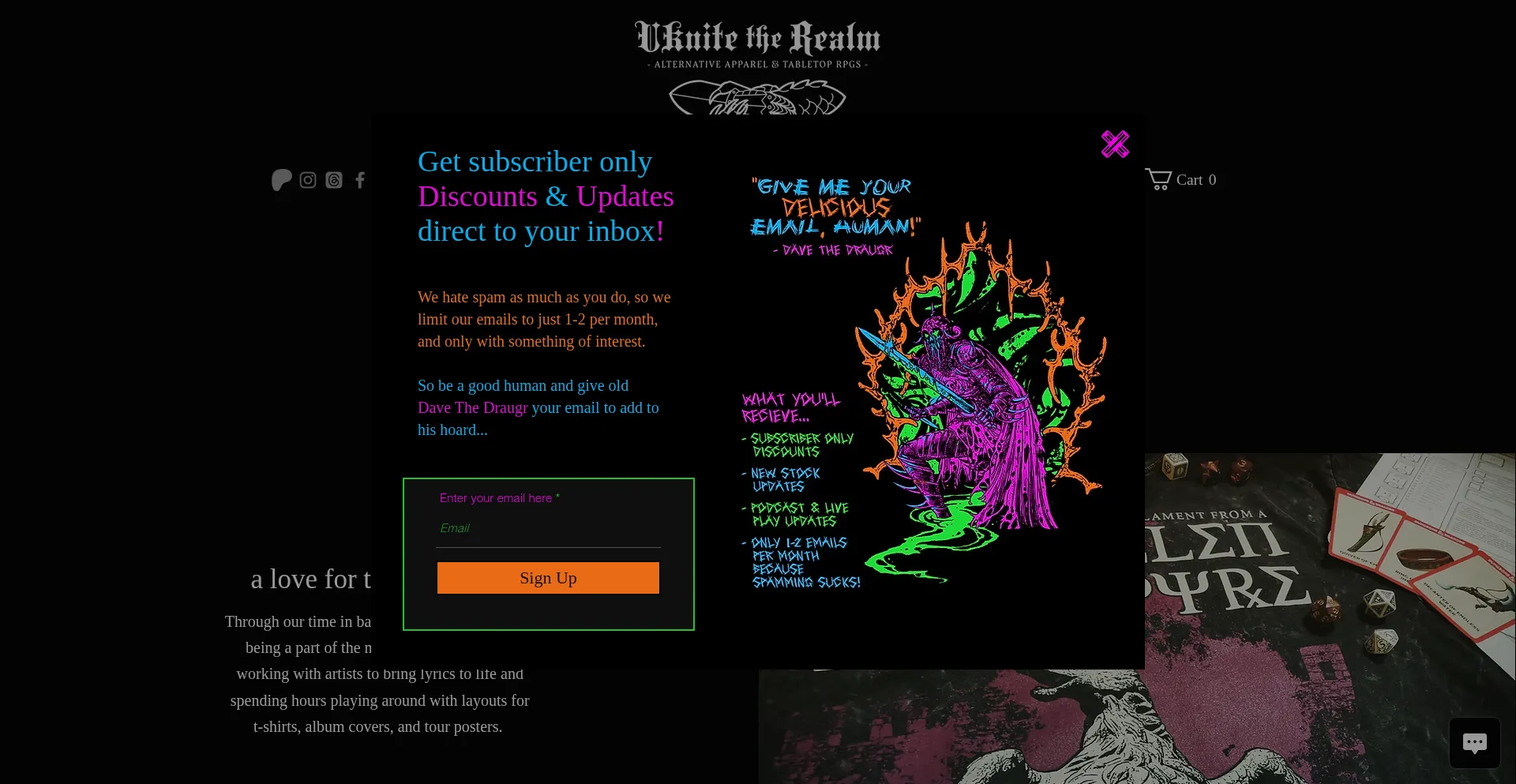 Alternative apparel inspired by fantasy and TTRPGs with heavy helping of Heavy Metal! Uknite the Realm is your go to Fantasy X Heavy Metal clothing brand 🤘🔥⚔️