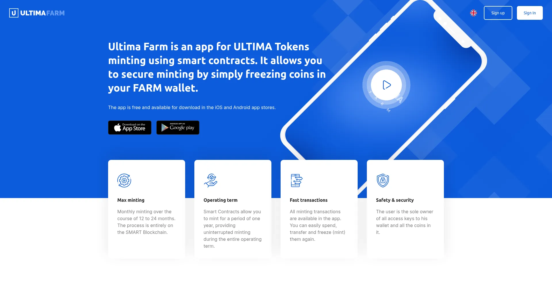 Ultima Farm is an app for PLC Ultima Coins minting using smart contracts. It allows you to secure minting by simply freezing coins in your FARM wallet.