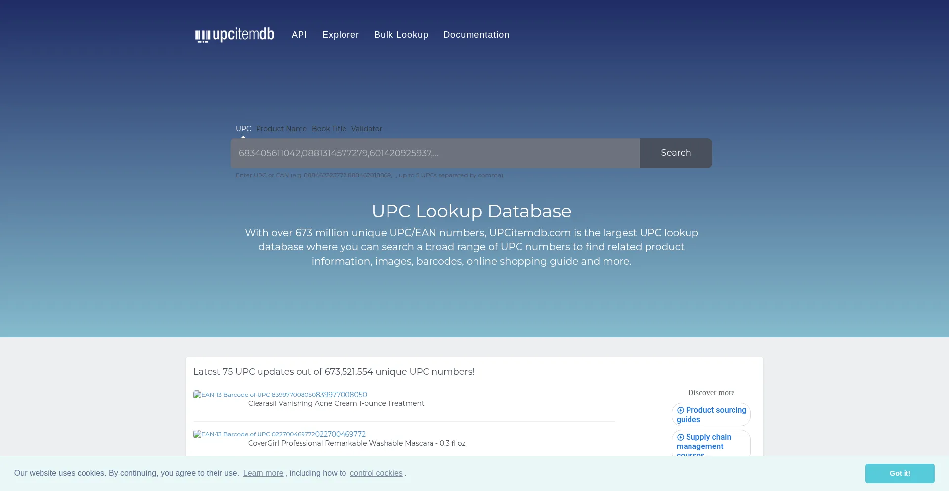 The largest UPC database offers API access, bulk lookup. With over 673 million barcodes, the database is updated daily and maintained by tech nerds.