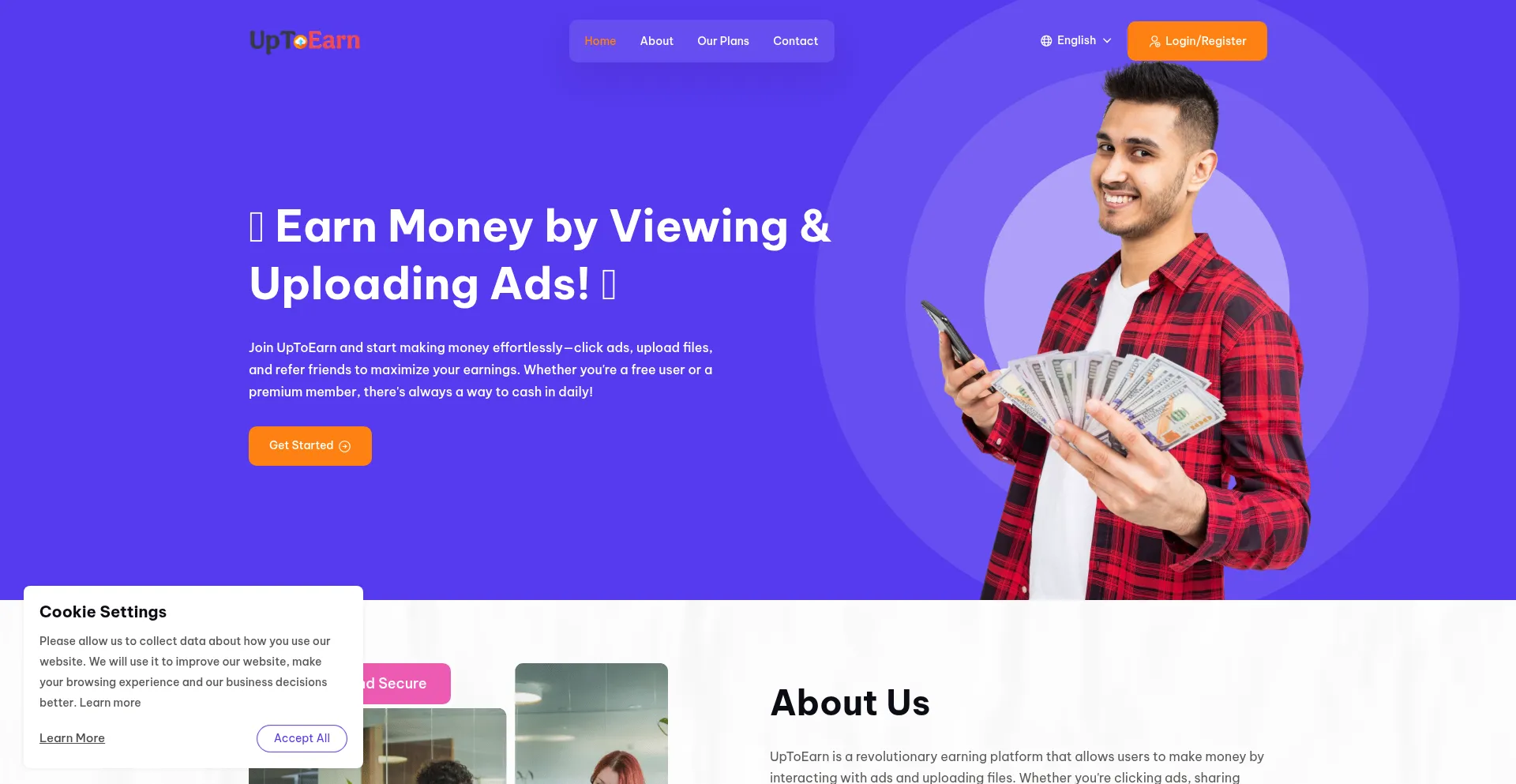 Join UpToEarn and start making money effortlessly—click ads, upload files, and refer friends to maximize your earnings.