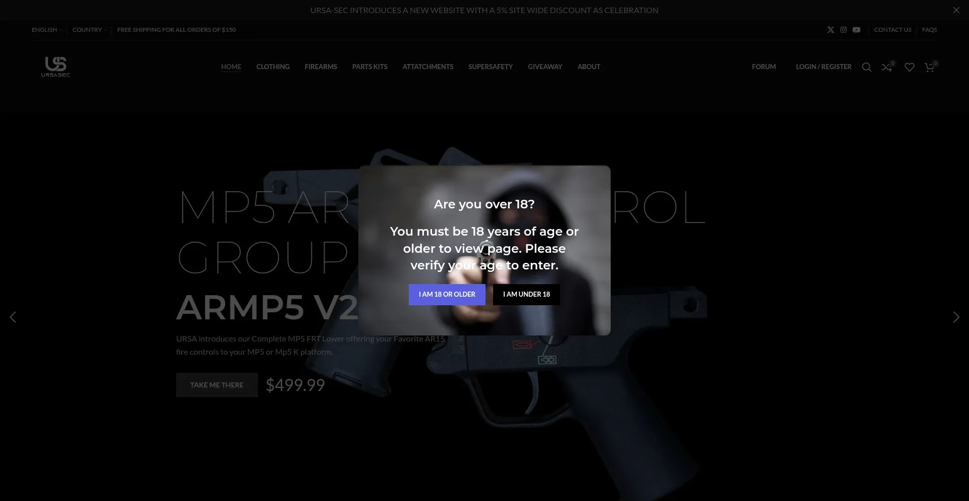 18+ Shopping Guns Registration Form Wordpress Platform Social Media Links Established Domain