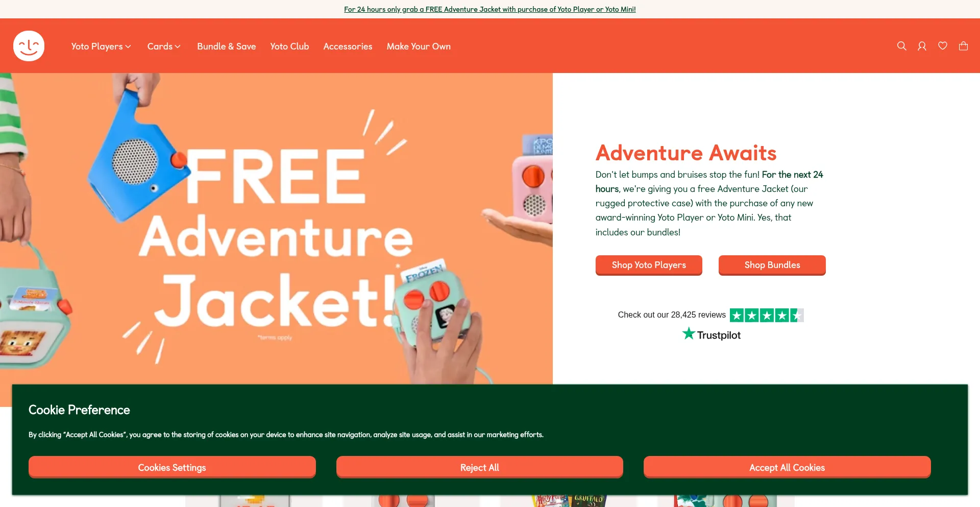 Get a FREE Adventure Jacket (protective case) when you buy any Yoto Player or Yoto Mini! Protect your award-winning audio player from bumps and bruises. This flash sale ends in ...