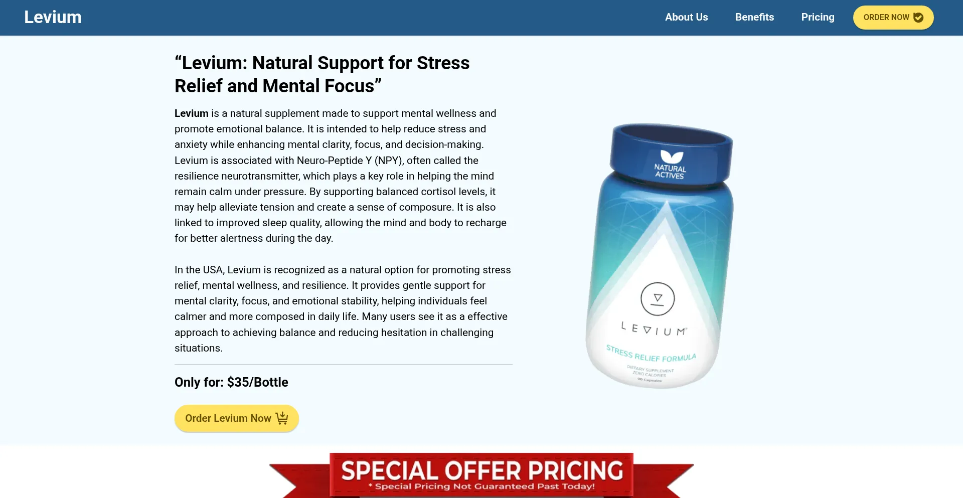 Levium is a natural supplement that reduces stress and anxiety, supports mental wellness and mental health, and helps improve focus, clarity, and better sleep.