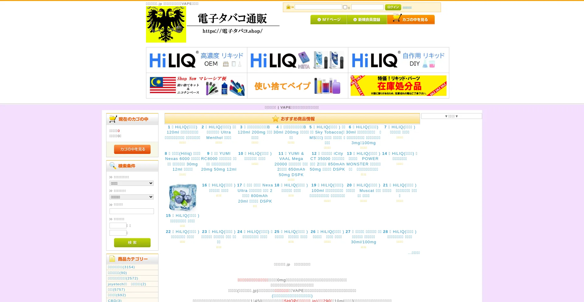 電子タバコ通販.jp おすすめニコチン入りリキッドを安く個人輸入代行。HiLIQのニコチンソルトやAspire、ヴェポレッソ、ジョイテック...