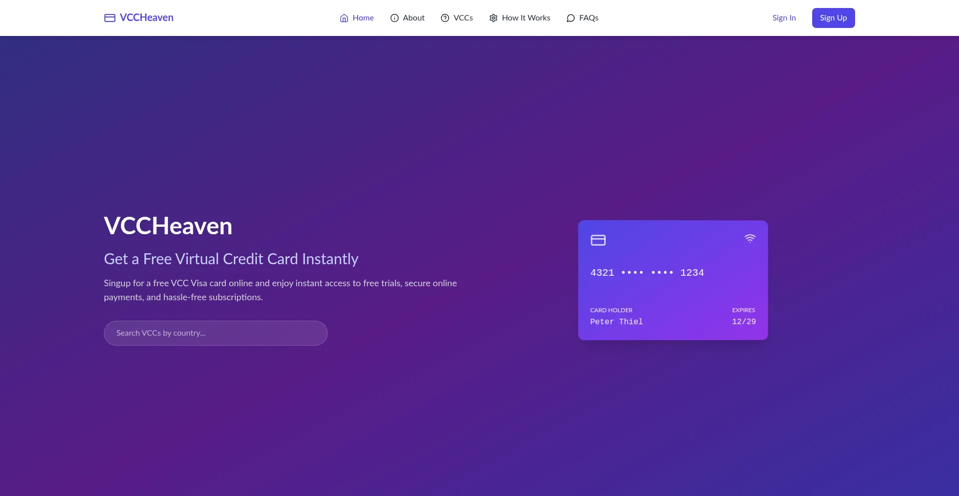 VCCHeaven - Free Virtual Credit Card for all countries