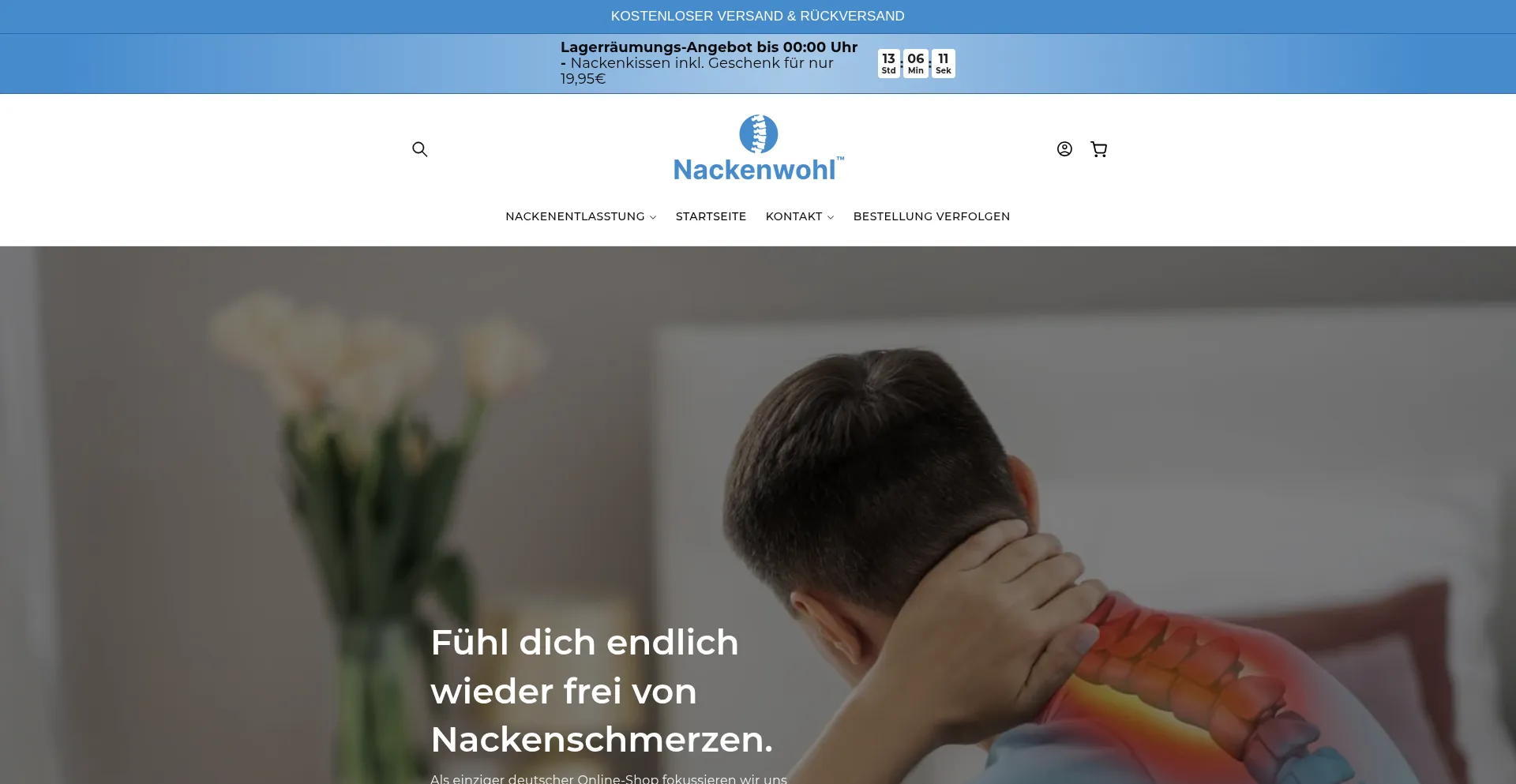 Schluss mit steifem Nacken am Morgen. Mit Nackenwohl entlastest du deine Halswirbelsäule im Schlaf – für erholte Nächte & schmerzfreie Tage. Jetzt mit gratis Schlafmaske im...