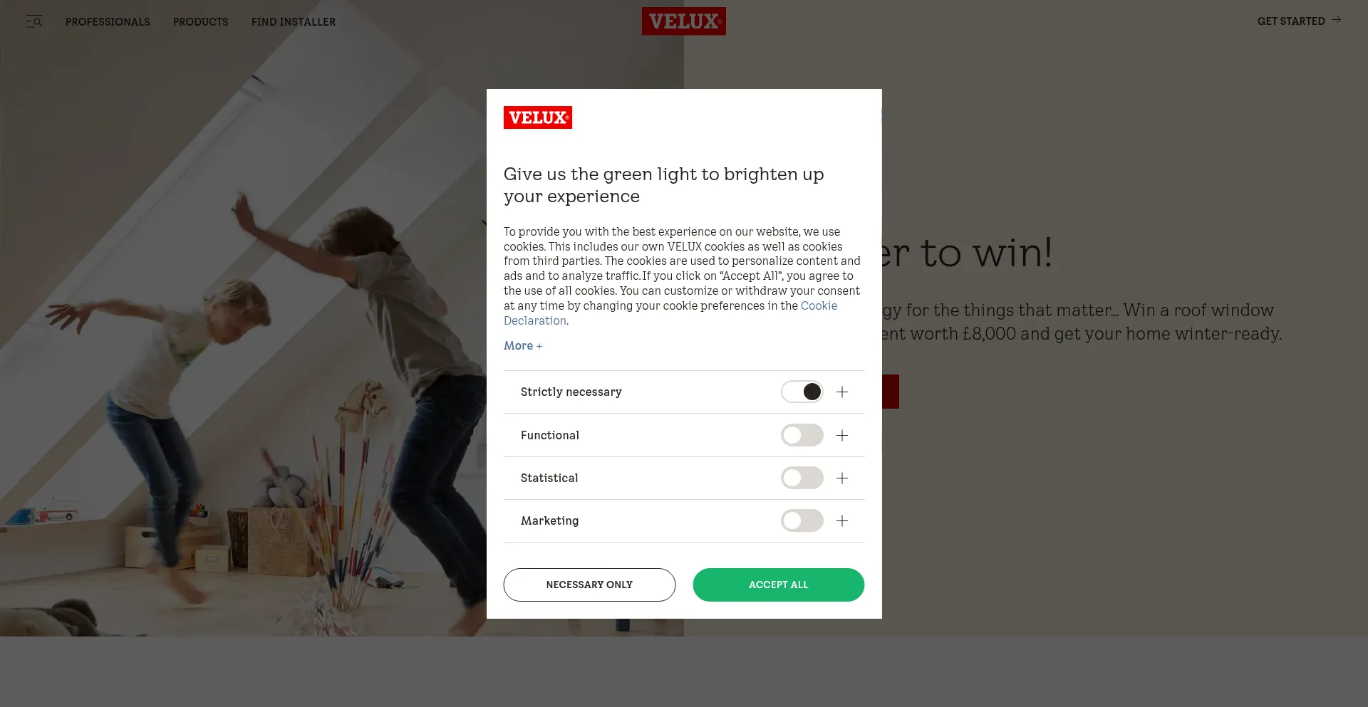 Die Website implementiert Cookie-Zustimmungsmechanismen in Compliance mit Datenschutzregulierungen wie DSGVO oder CCPA. Dies demonstriert, dass velux.uk Datenschutzstandards einhält und Benutzern Kontrolle über persönliche Datenerfassungspraktiken bietet.