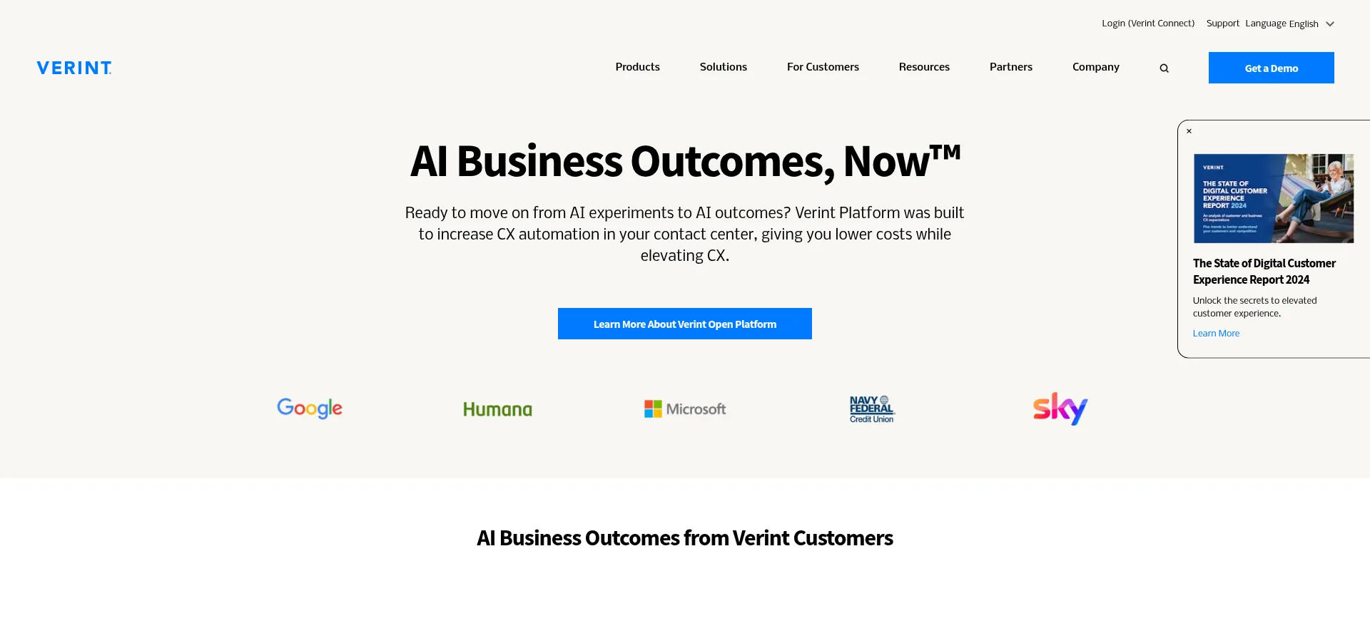 Verint is a leader in CX automation. The world’s most iconic brands rely on our open CCaaS platform and team of AI-powered bots to create tangible AI business outcomes, now.