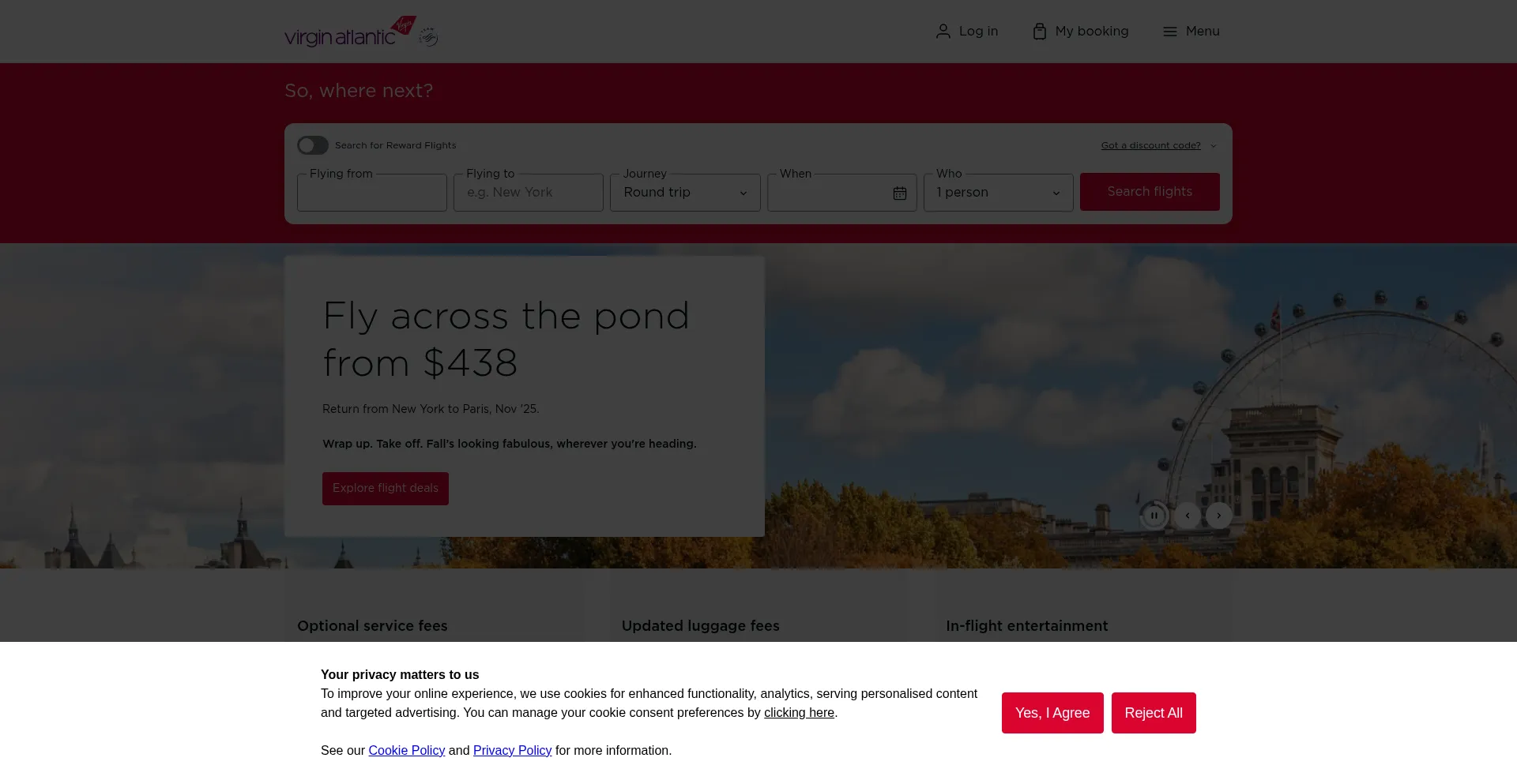 Hello you. Welcome to Virgin Atlantic. Find our best fares on your next flights to the US and beyond, with a fantastic choice of food, drinks, award winning entertainment and on...