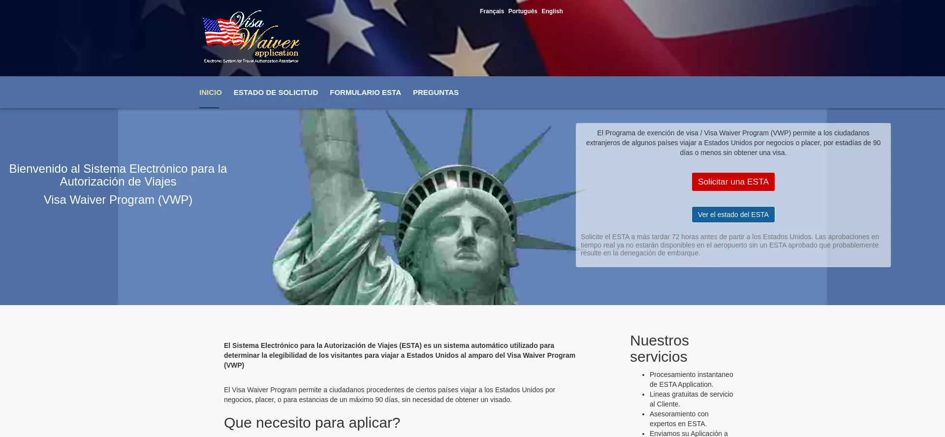 Sistema Electrónico para la Autorización de Viaje (ESTA) a los Estados Unidos en línea bajo el programa de Visa Waiver.