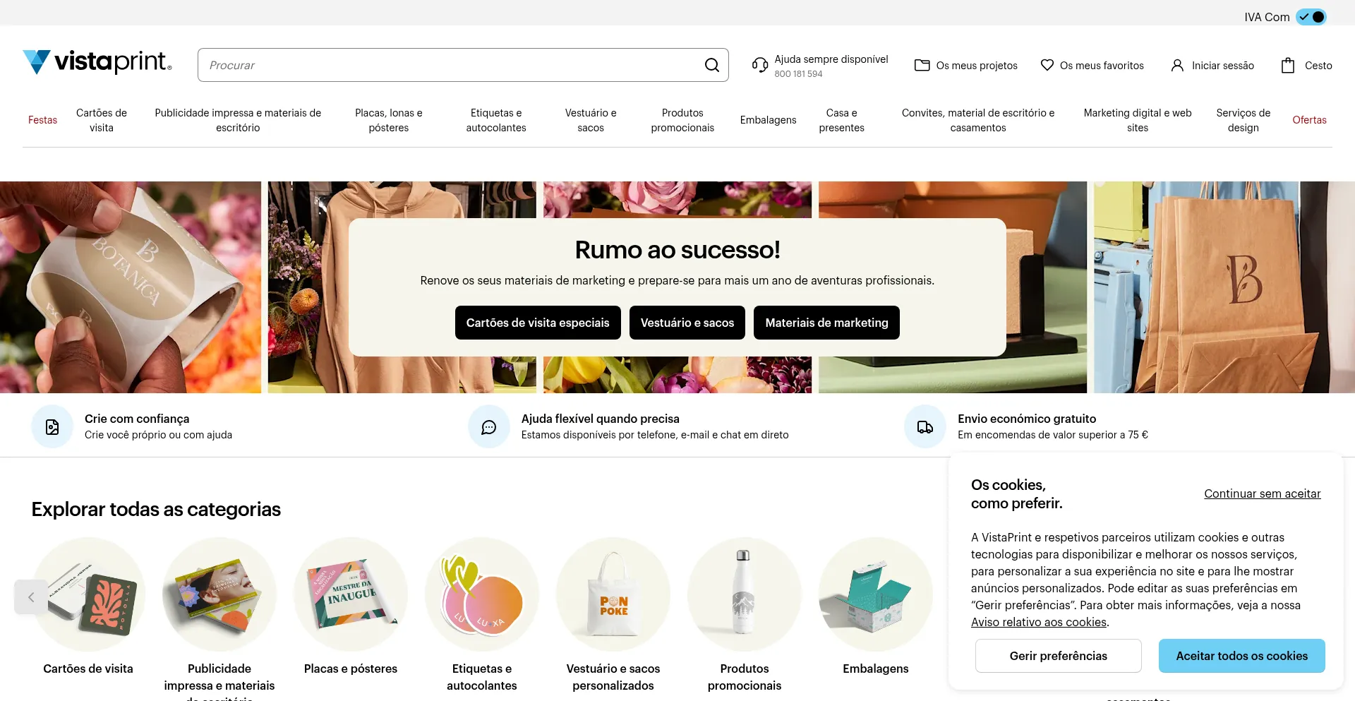 A VistaPrint Portugal é a empresa de impressão digital líder no mundo. Ajudamos as pequenas empresas a se promoverem eficazmente. Crie e encomende materiais de marketing impr...
