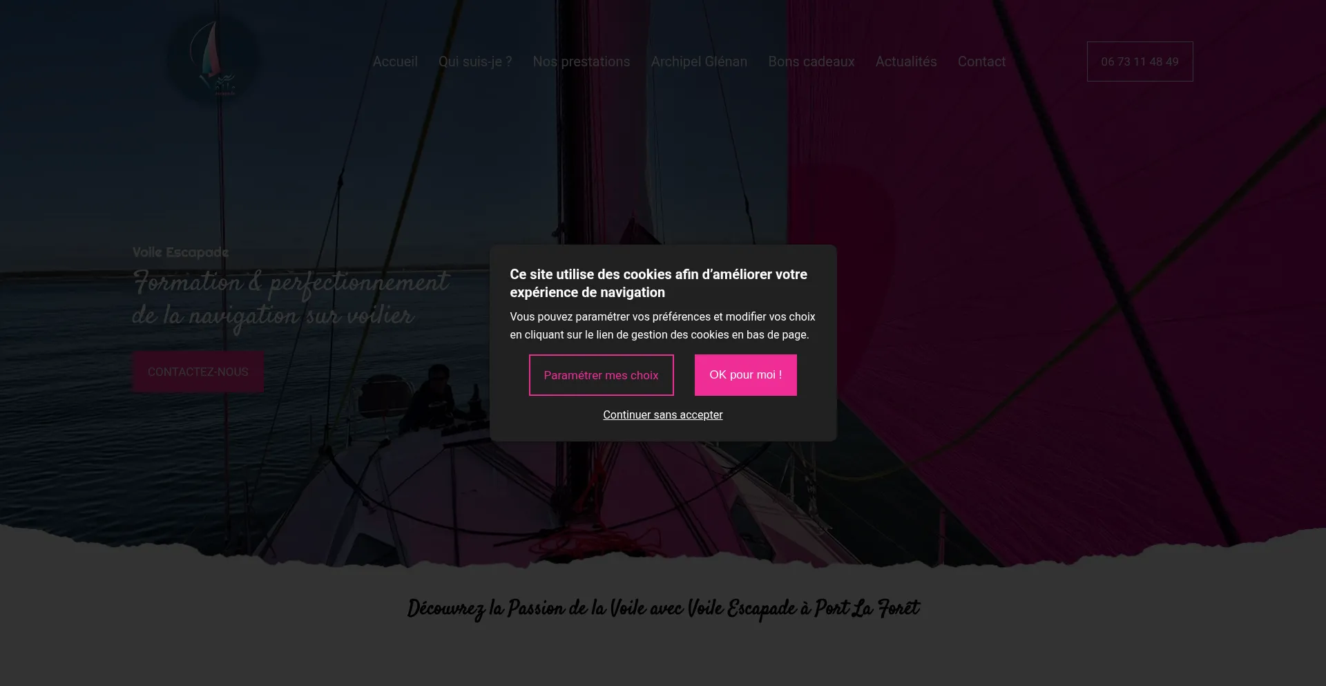 Située à Port La Forêt, Voile Escapade propose des formations en voile, du coaching personnalisé et la location d'une nuit à bord d’un voilier, stage de voile et formatio...